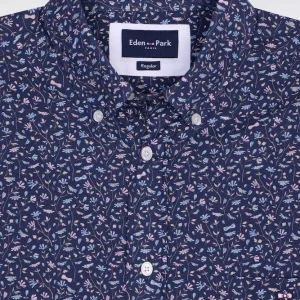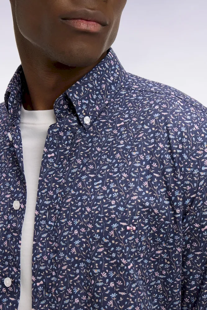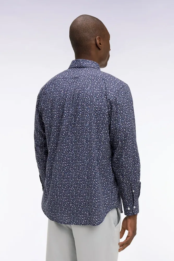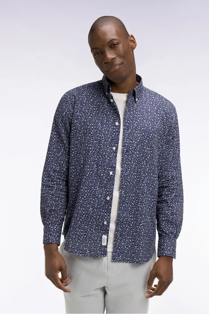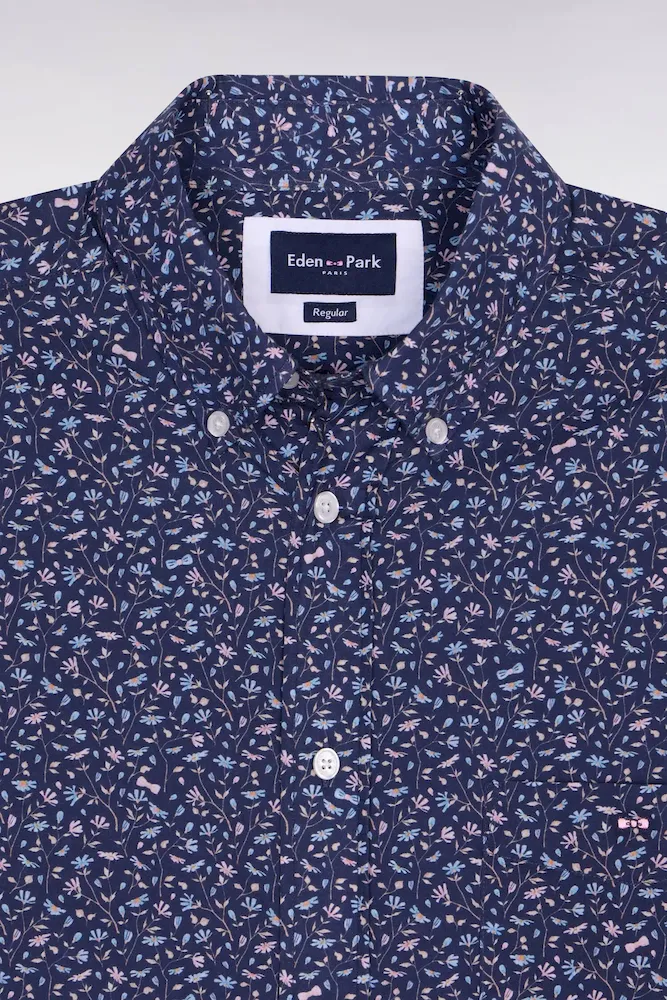 Pilier du vestiaire masculin Eden Park pour la saison printemps-été, la chemise à micromotifs floral, où se discerne l’iconique nœud papillon Eden Park, est une nouvelle fois au cœur de notre ligne habillée. Travaillée pour l’été dans une popeline de coton, elle est dotée de nos finitions emblématiques. Cette chemise homme marine à l’imprimé exclusif se porte dès l’arrivée des beaux jours accompagnée d’un chino ou d’un jean en denim savamment délavé.
