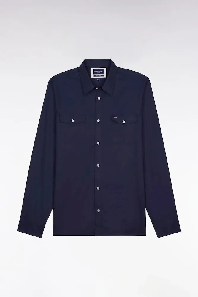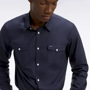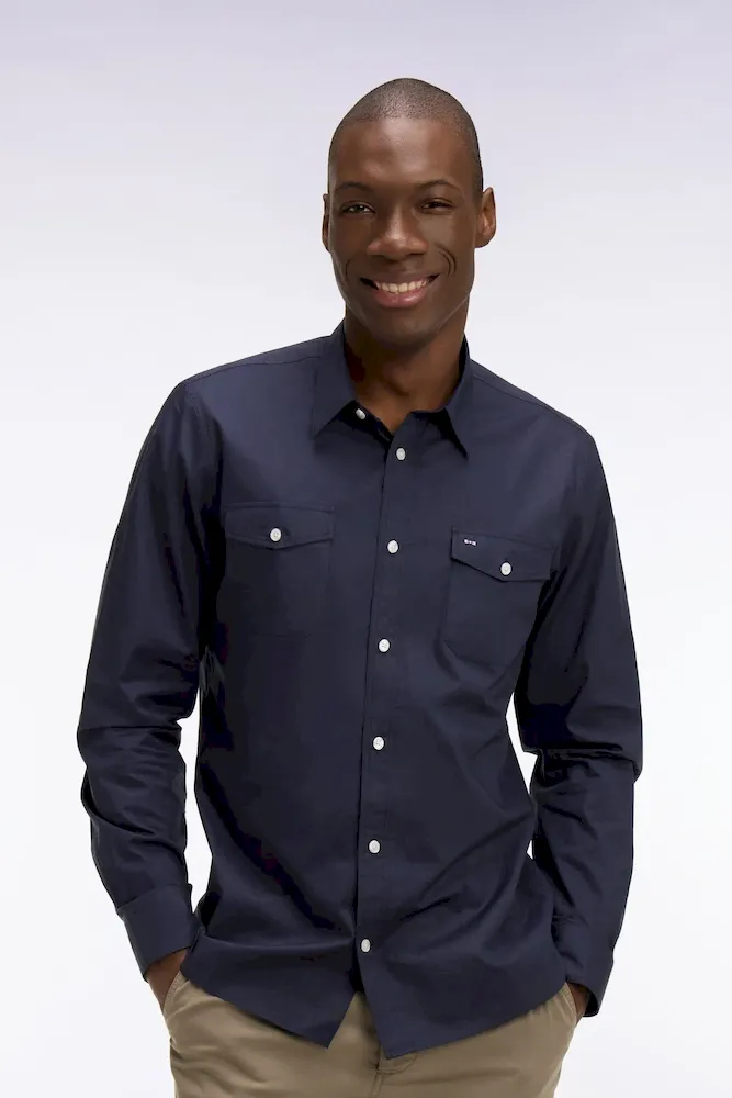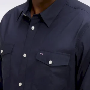 Au croisement des collections de chemises masculines et de surchemises plus décontractées se trouve ce modèle doté de deux poches à rabat plaquées. Pour cette chemise au style masculin authentique déclinée en marine ou en kaki, notre Maison a sélectionné un coton Pima péruvien de grande qualité. Pants droits, col à pointes libres et broderie emblématique : chaque détail assure un fini et une durabilité sans faille.