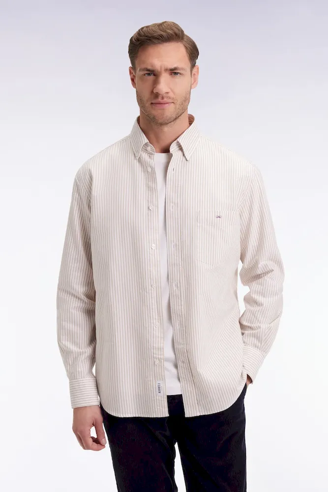 Une rayure bâton sobrement contrastée, un col boutonné et des finitions iconiques : cette chemise rayée revisite les classiques Eden Park avec justesse. Facile à associer, elle accompagnera aussi