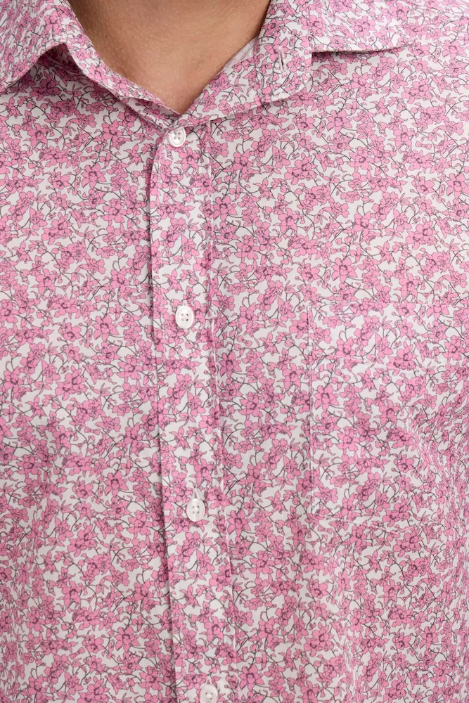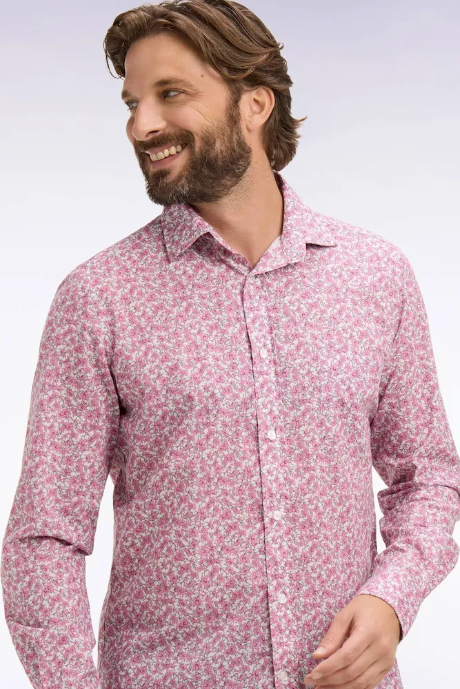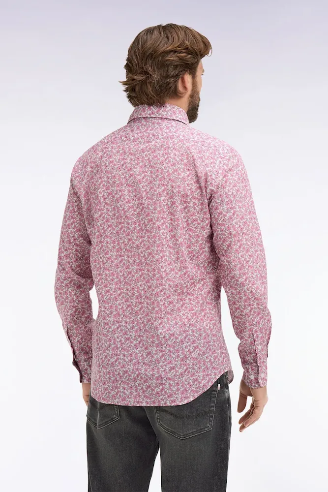 Cette chemise en popeline de coton blanche dévoile un micromotif floral rose subtil qui enrichit la silhouette avec délicatesse. Sa coupe slim apporte une ligne moderne et ajustée, idéale pour dynamiser une tenue habillé comme un ensemble plus décontracté. Un modèle raffiné, pensé pour illuminer le vestiaire de l’homme moderne avec une touche de fantaisie.