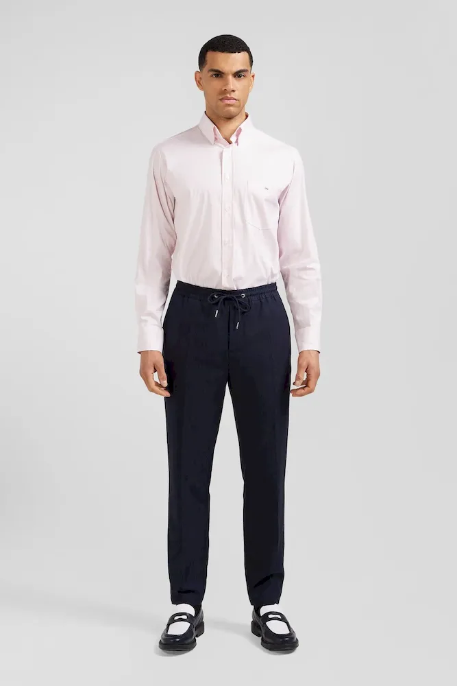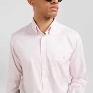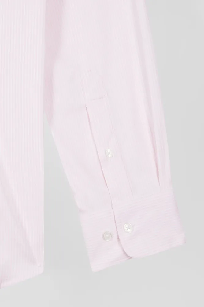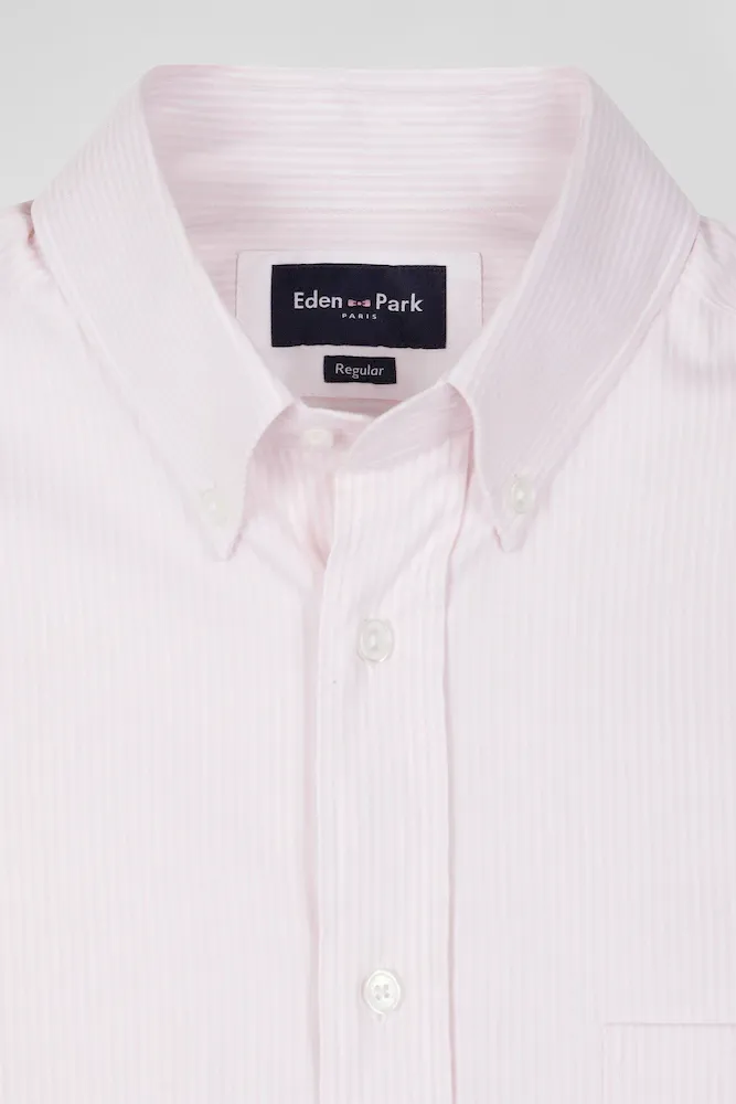 Chemise en popeline de coton rose à rayures bâton coupe Regular