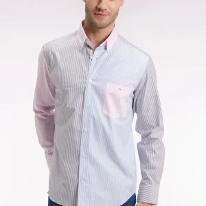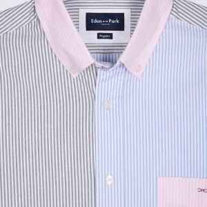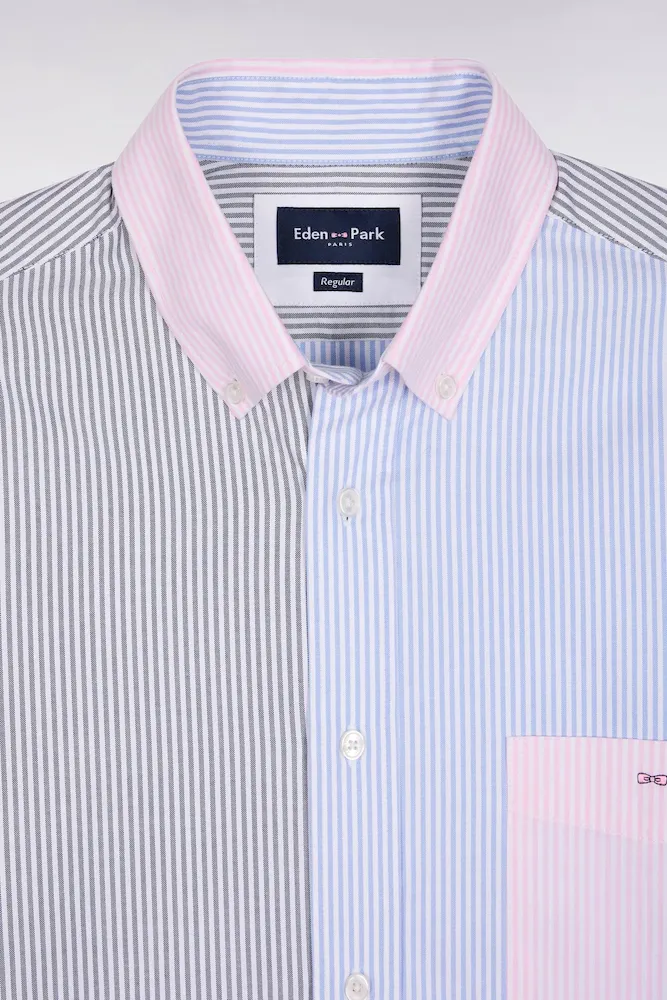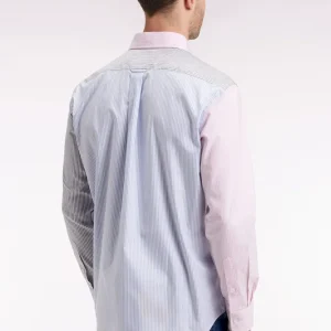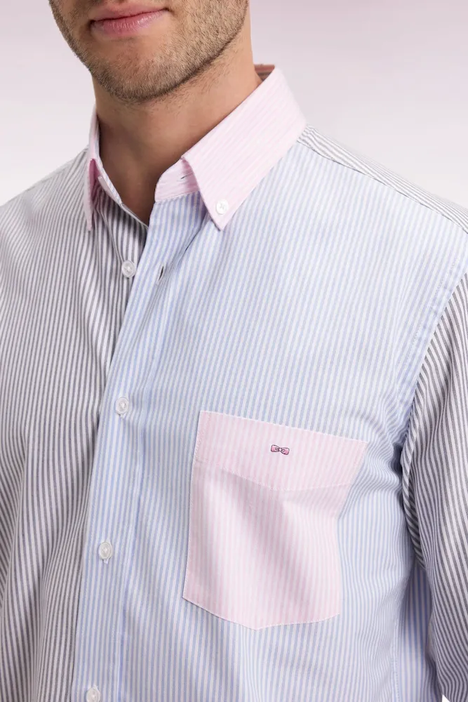 Cette chemise rayée réinterprète la rayure bâton dans une proposition tricolore des plus graphiques. Réalisée dans un twill de coton pour un porté doux au quotidien, cette chemise comporte un col classique aux pointes élégamment boutonnées. Avec sa poche poitrine brodée et sa patte de boutonnage visible, aux boutons ovales rappelant la forme d’un ballon de rugby, cette chemise rayée ne fait aucune impasse sur l’élégance