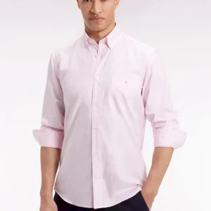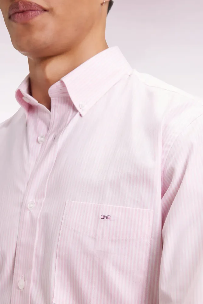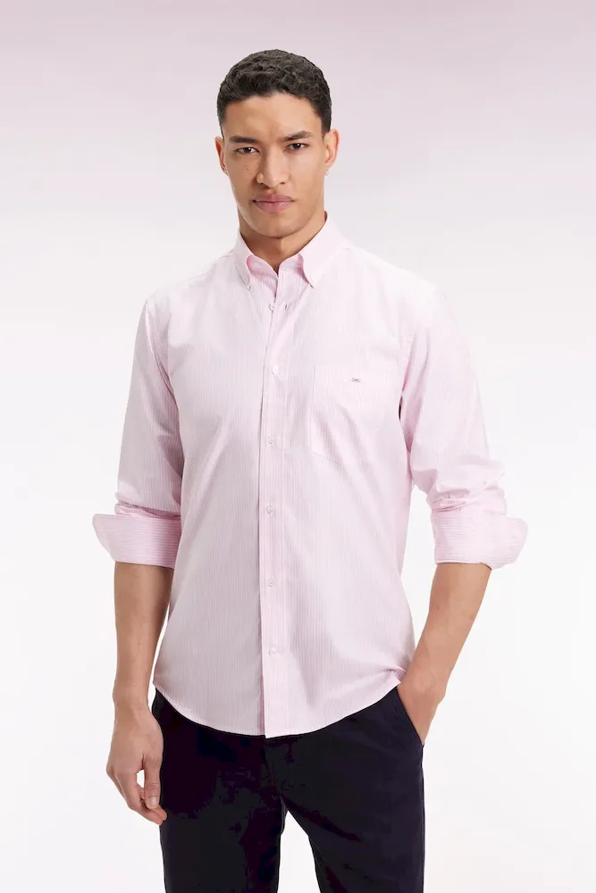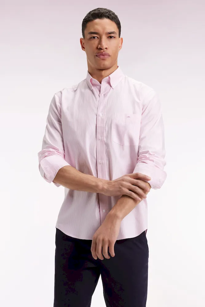 Chemise rayée en coton rose coupe droite