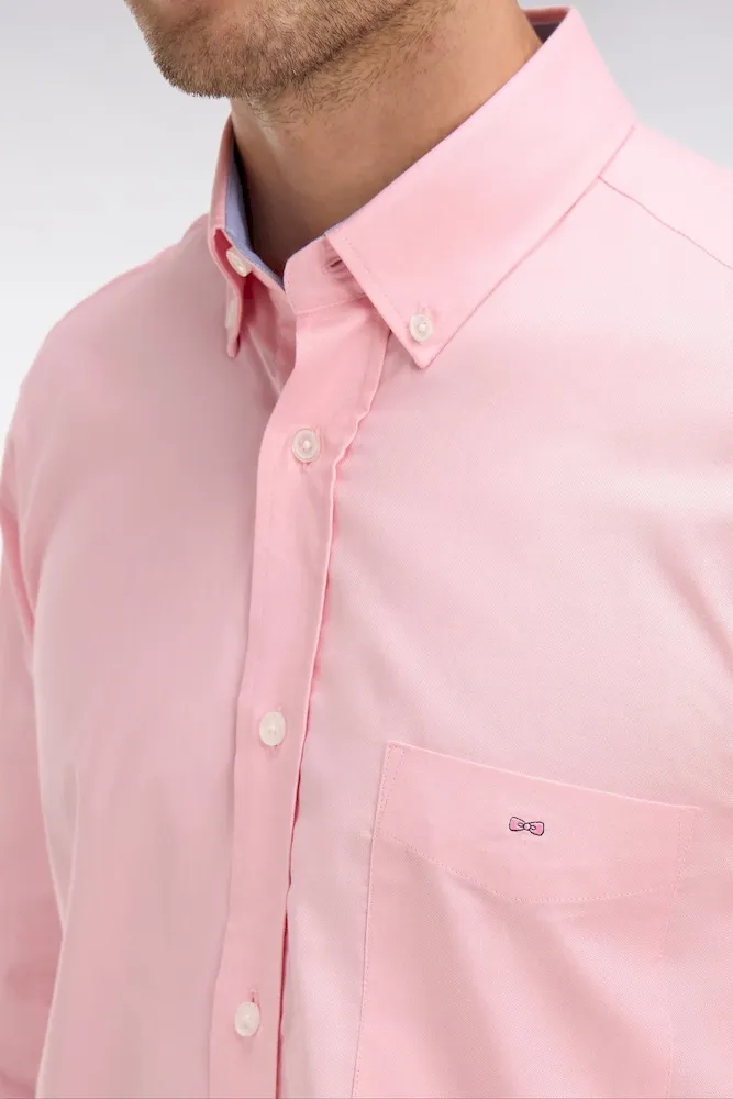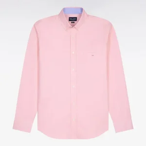 Une élégance maîtrisée pour cette chemise unie réalisée en coton Oxford de qualité. Rehaussé par un petit logo nœud papillon rose brodé sur la poitrine, ce modèle aux finitions soignées habillera d’une touche chic vos pantalons de costumes comme vos chinos retroussés. Il est grand temps de l’adopter.