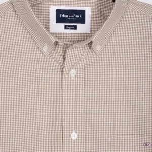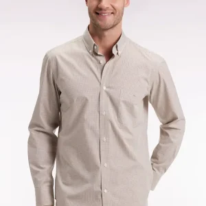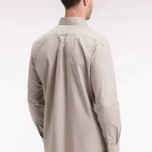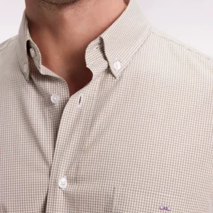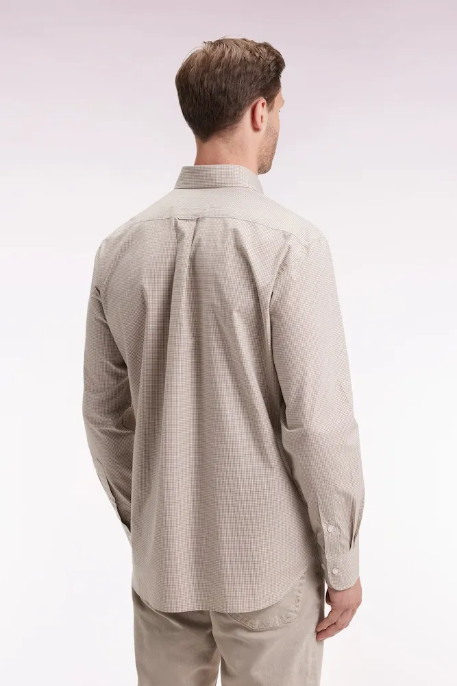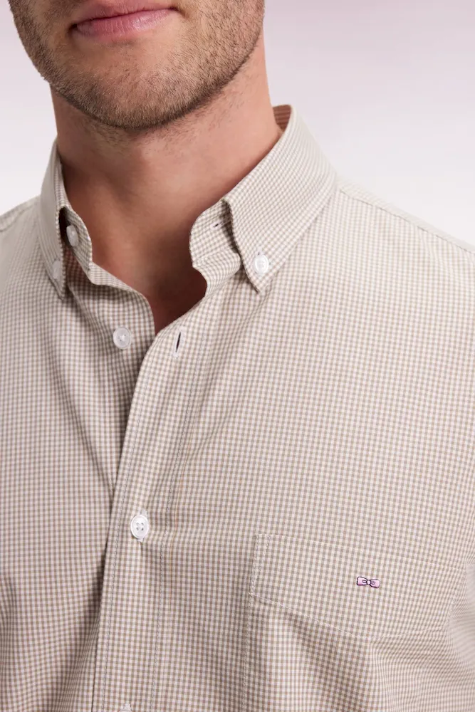 Chemise vichy en popeline de coton beige coupe droite