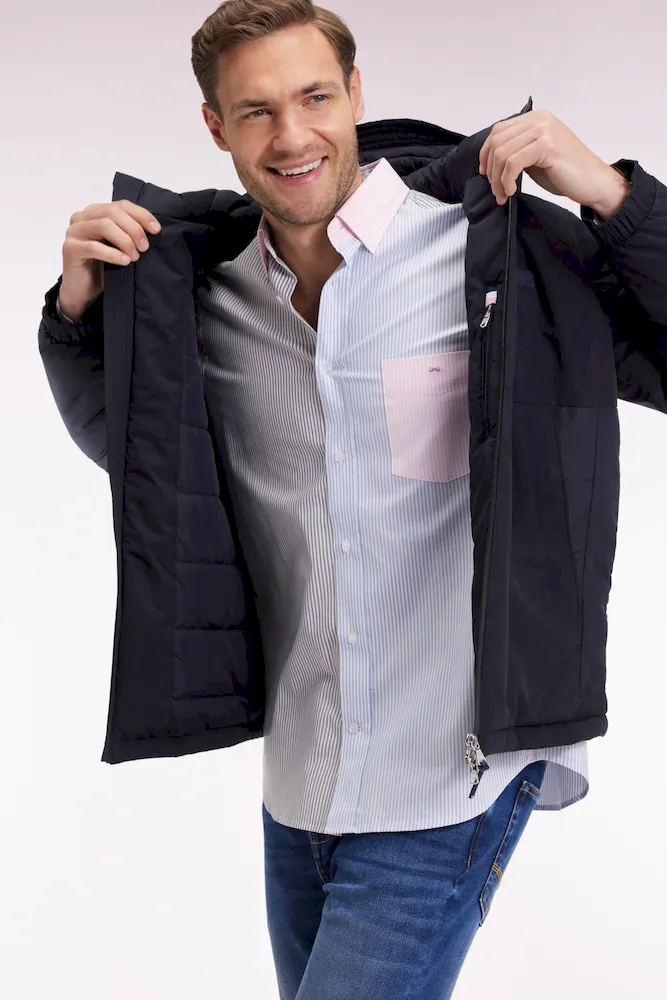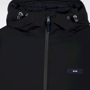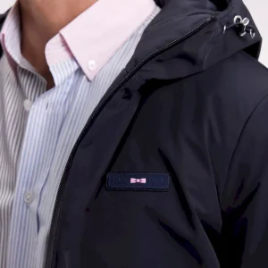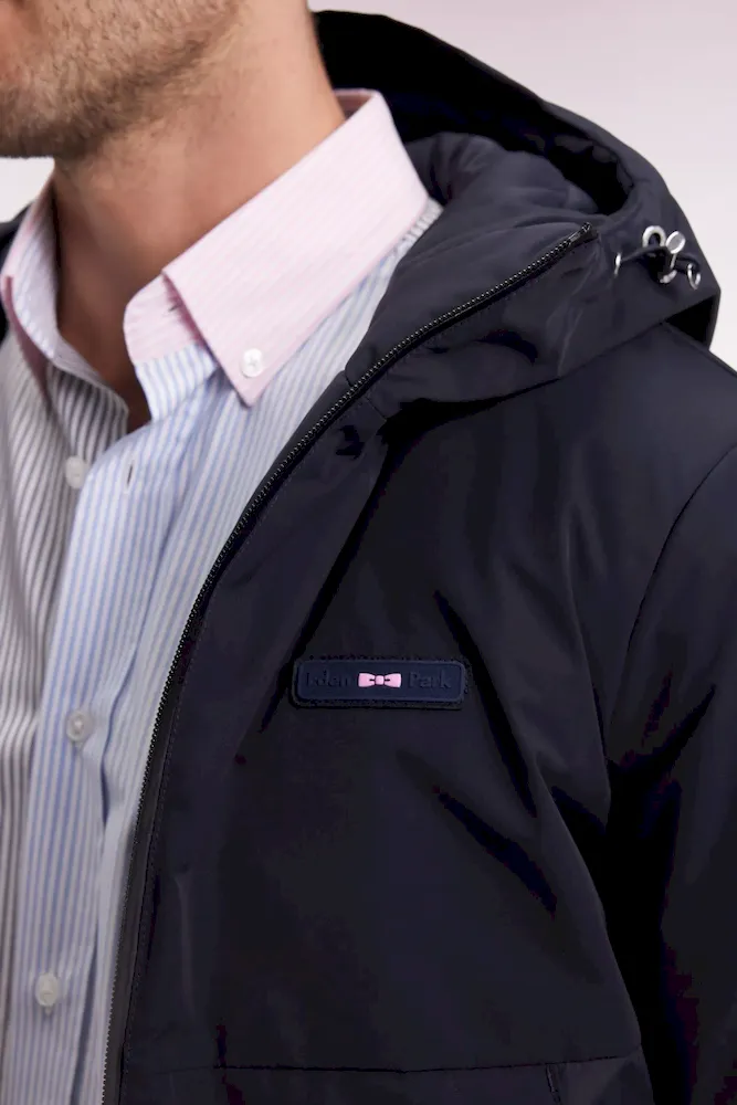 Pensé pour affronter les jours de vent sans entraver le mouvement, ce coupe-vent en nylon allie esprit sportif et détails signature. Son design structuré alterne un devant lisse et un dos matelassé contrasté, tandis que son travail de découpes renforcent son allure sport-chic. La capuche à visière, les poignets pressionnés et les cordons de serrage assurent protection et confort