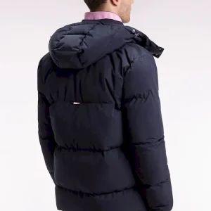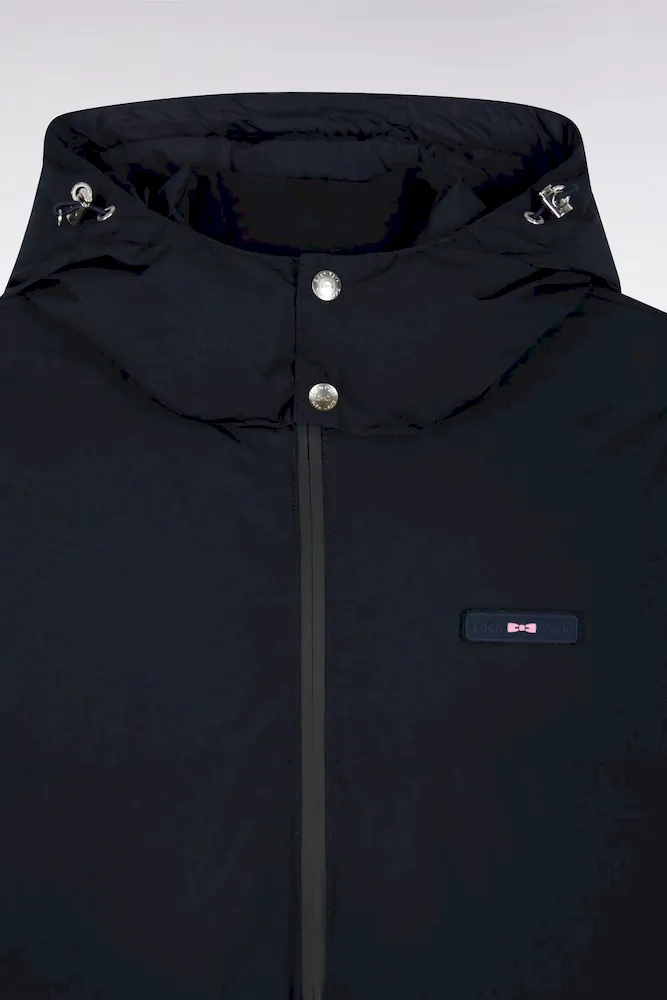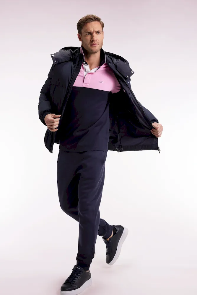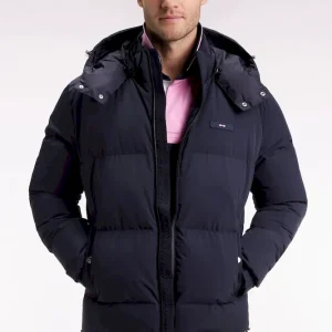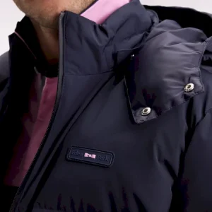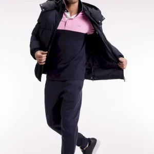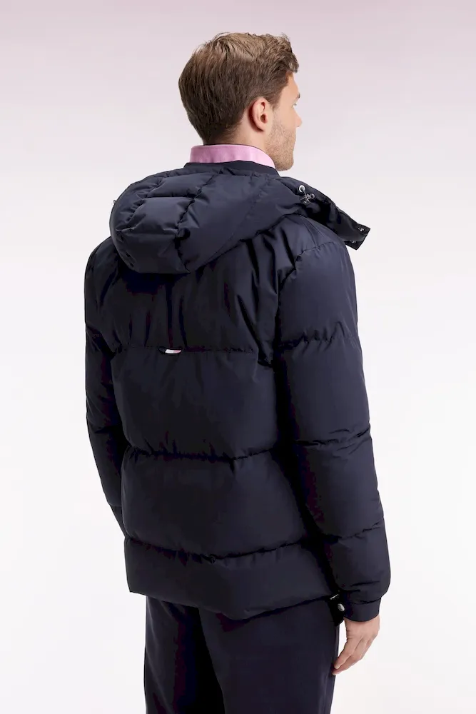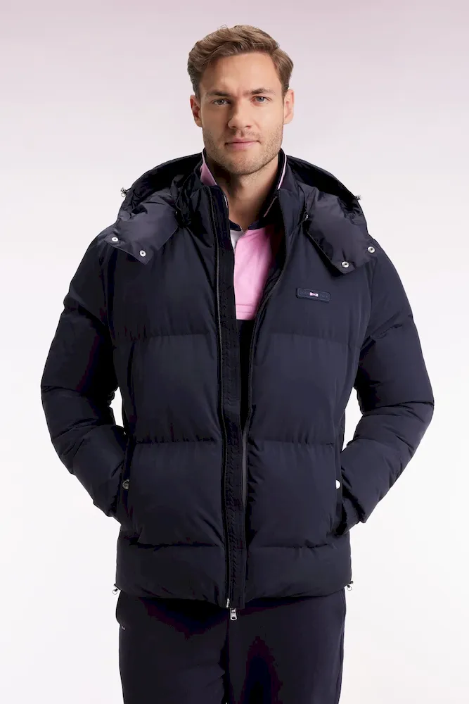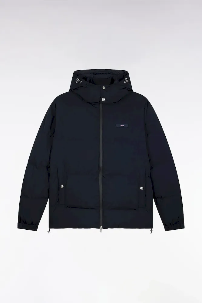 Pensée pour la ville comme pour l’évasion, cette doudoune marine conjugue protection et allure. Confectionnée en nylon au fini mat, elle séduit par son matelassage large et son col montant structurant. La capuche amovible renforce sa polyvalence, tandis que les détails signature, rubans tricolores en gomme, nœud papillon et zip Aquaguard, affirment une silhouette sport chic à l’élégance urbaine assumée. Ses nombreuses poches renforcent la praticité de cette doudoune homme