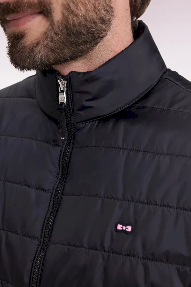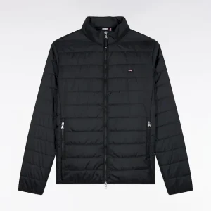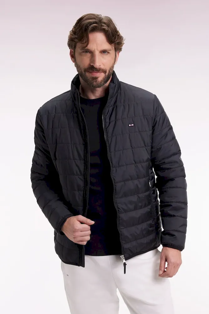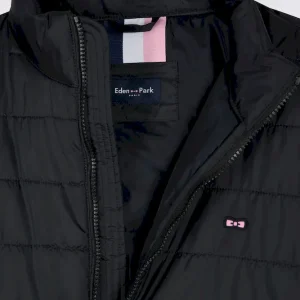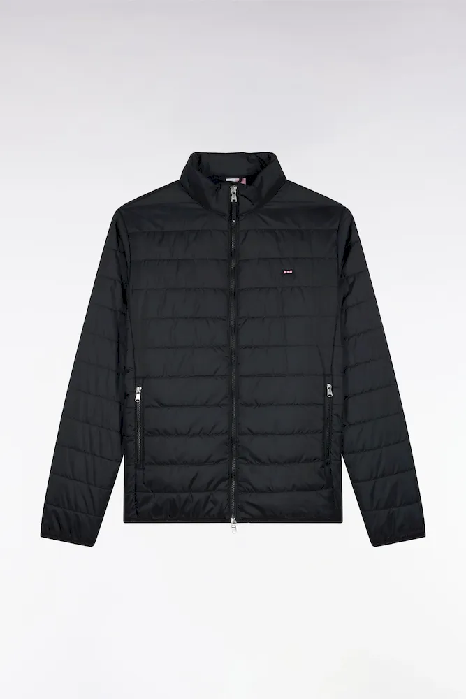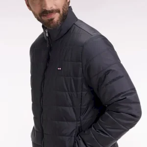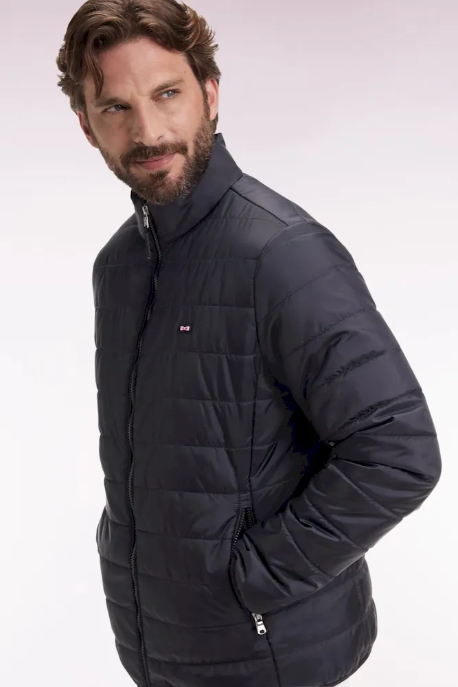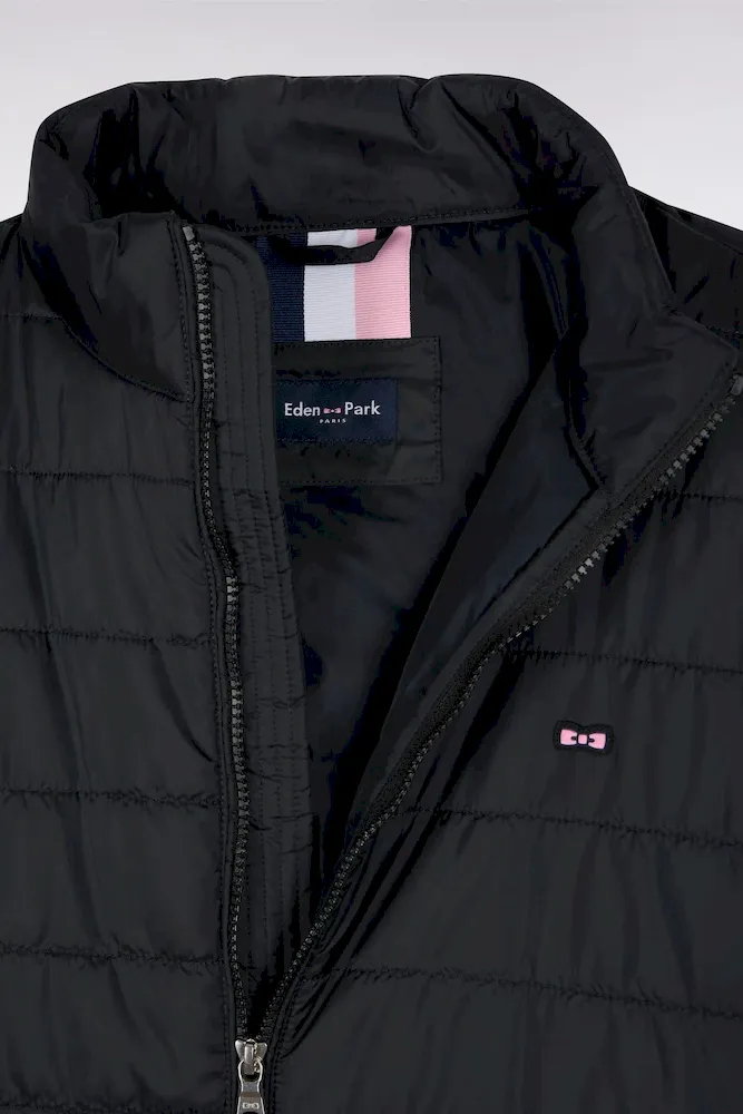 Notre doudoune déperlante en nylon matelassé à col montant est pensée pour conjuguer confort thermique et lignes épurées. Sa silhouette droite est structurée par une fermeture zippée à double curseur, un bas élastiqué twisté par un biais siglé et deux poches intérieures à scratch. Le nœud papillon en gomme et le ruban ottoman tricolore à l’encolure rappellent la signature French Flair d’Eden Park. Ce modèle classique existe en version doudoune sans manches