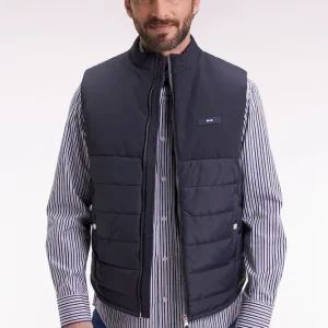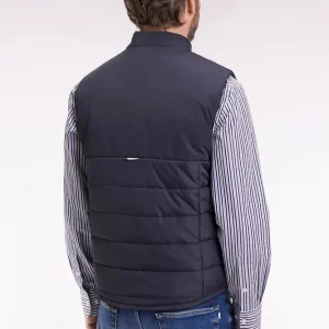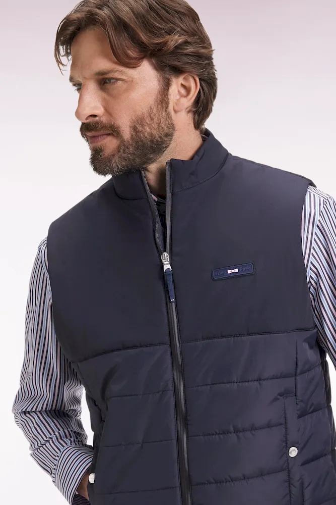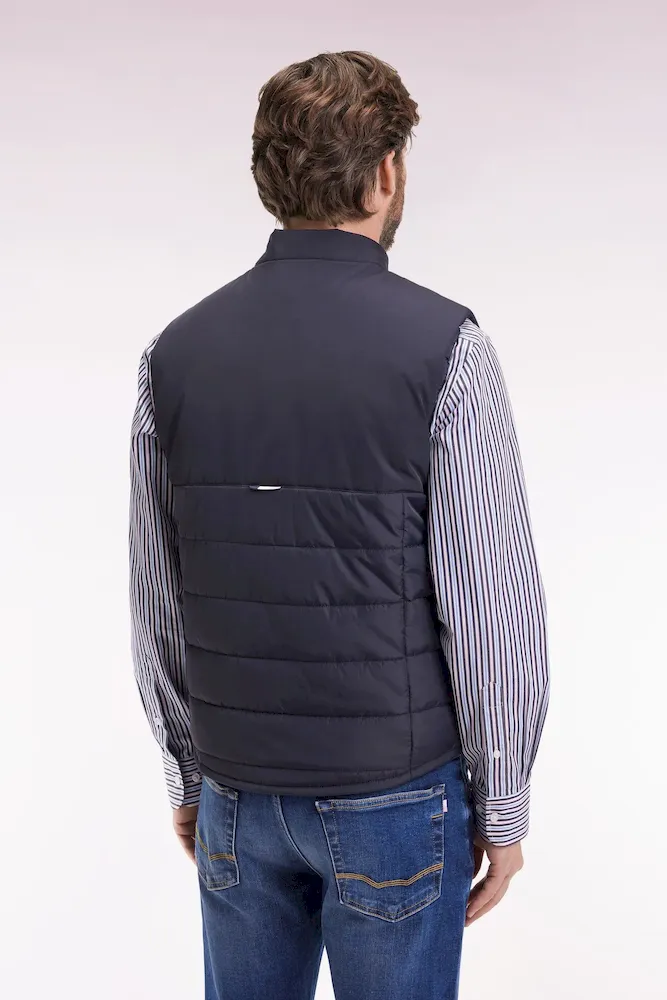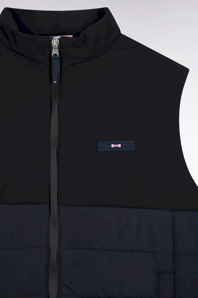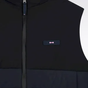 Chaque pièce de la collection affirme une élégance confidentielle, celle que les connaisseurs savent nommer. Cette doudoune sans manches joue l’équilibre parfait entre technicité et élégance. Sa construction bimatière, lisse et matte sur le haut, en nylon matelassé sur le bas, affirme une silhouette moderne et structurée. Le zip Aquagard à double curseur renforce la protection contre les éléments, tandis que les finitions soignées, comme le badge silicone sur la poitrine et les poches pressionnées, signent un essentiel sport chic, à porter seul ou sous un manteau au cœur de l’hiver