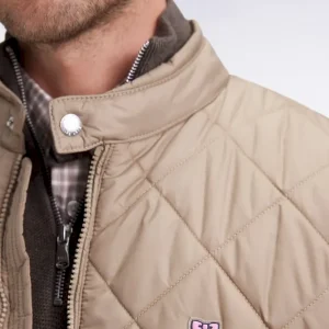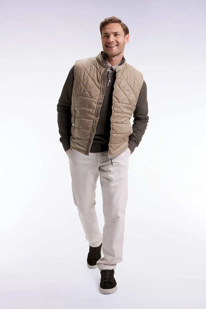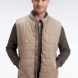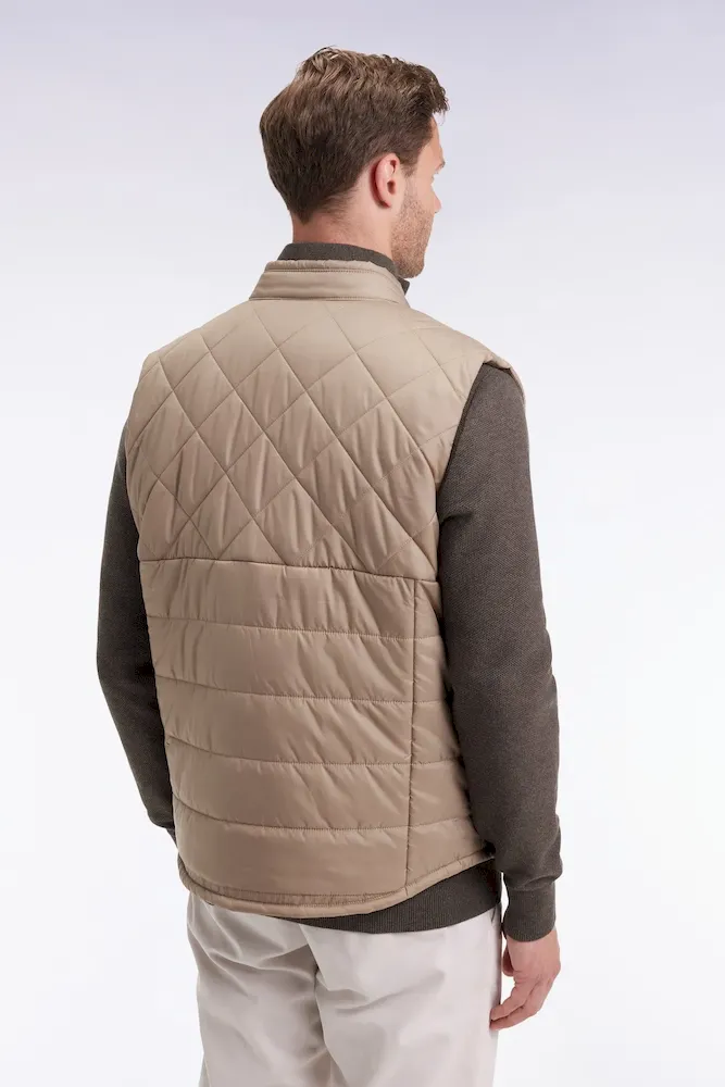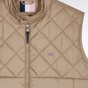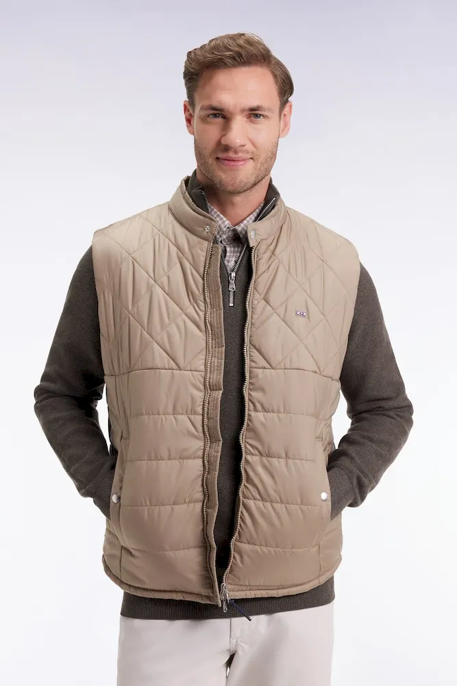 Doudoune sans manches col motard en nylon matelassé beige