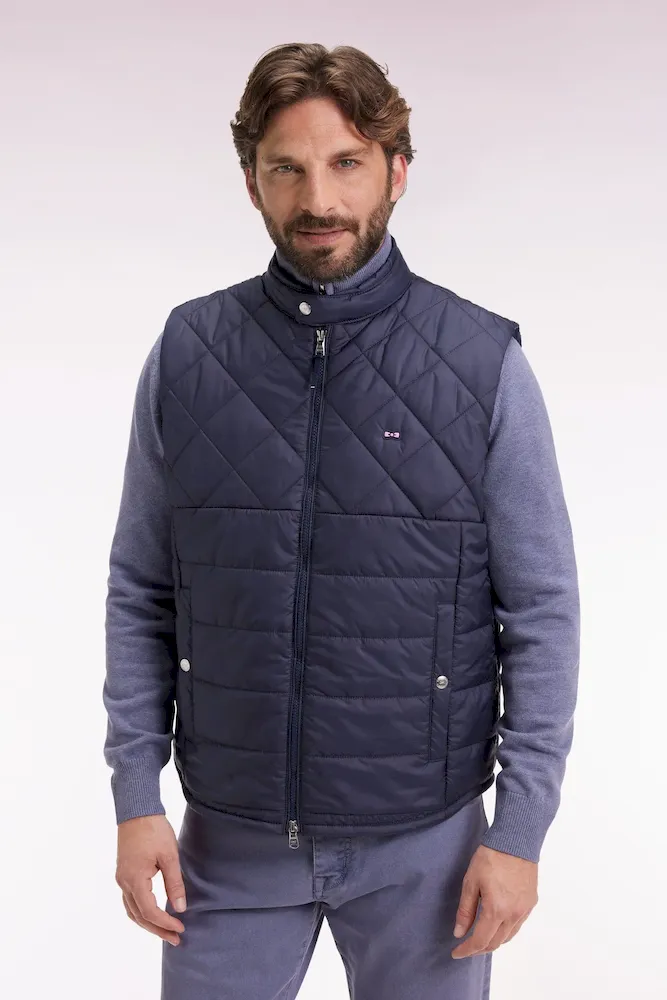 Pensée comme une pièce forte du vestiaire de mi-saison, cette doudoune sans manches masculine présente un col motard pressionné et un jeu graphique de matelassages. En nylon mat, cette pièce tendance alterne matelassage losange et horizontal pour une allure moderne et structurée en toutes circonstances. Déclinée en beige, kaki ou bleu gris, elle allie fonctionnalité et style grâce à ses finitions soignées et ses poches pratiques pour le quotidien