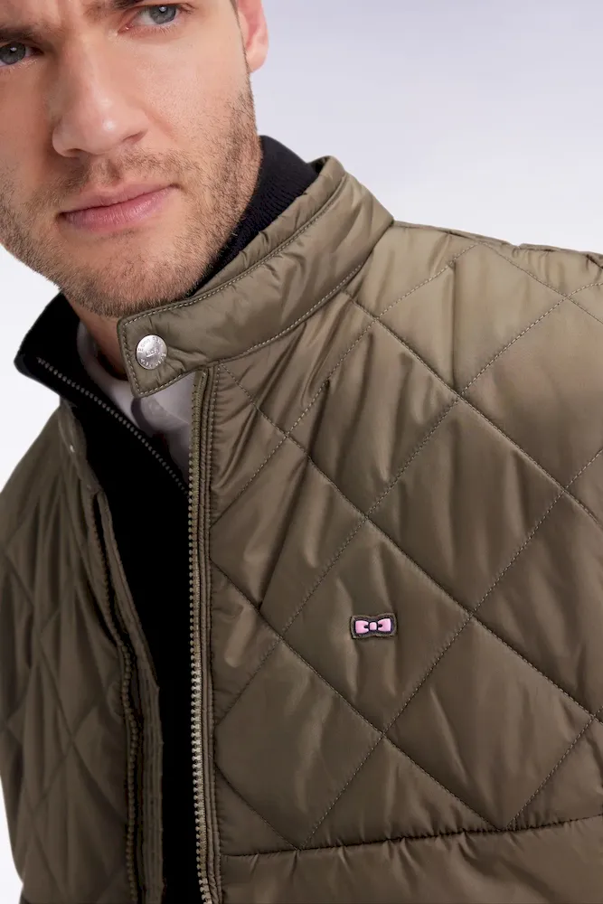 Pensée comme une pièce forte du vestiaire de mi-saison, cette doudoune sans manches masculine présente un col motard pressionné et un jeu graphique de matelassages. En nylon mat, cette pièce tendance alterne matelassage losange et horizontal pour une allure moderne et structurée en toutes circonstances. Déclinée en beige, kaki ou bleu gris, elle allie fonctionnalité et style grâce à ses finitions soignées et ses poches pratiques pour le quotidien