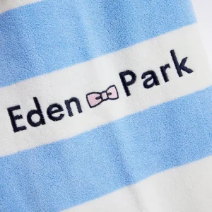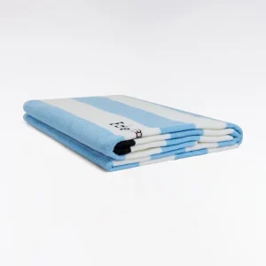 Drap de plage rayé en coton éponge ciel