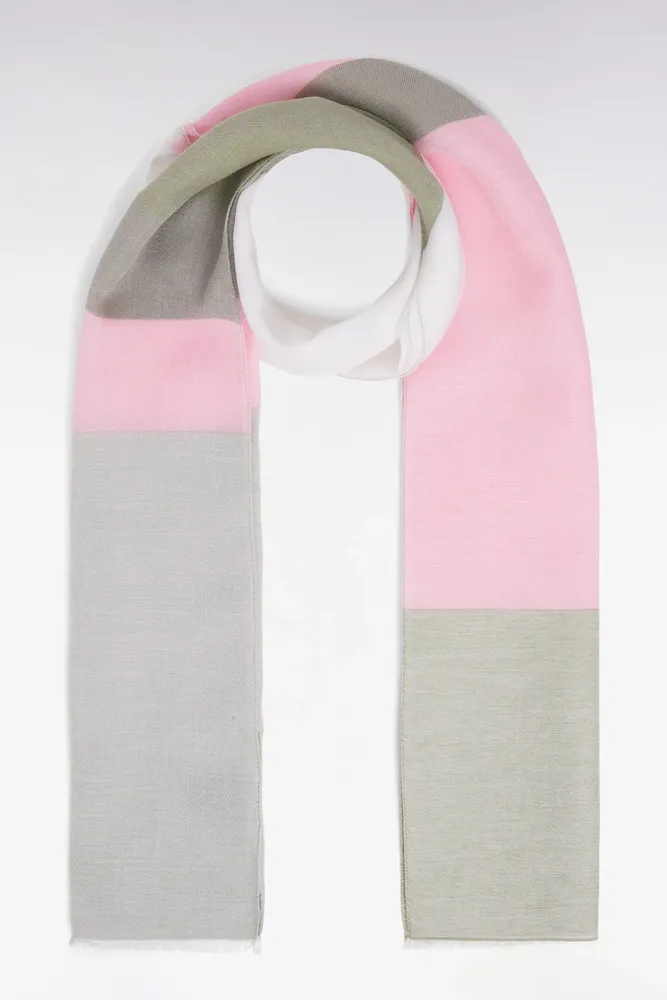 Cette écharpe fluide et élégante mêle des teintes douces pour allier chic et intemporalité. Avec ses bords francs à fines franges et son tissage jacquard au nom de notre Maison française, elle s’adapte à toutes les occasions. Un modèle qui rappelle les écharpes de supporter en en proposant une variation raffinée pour le quotidien.