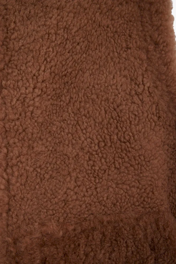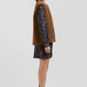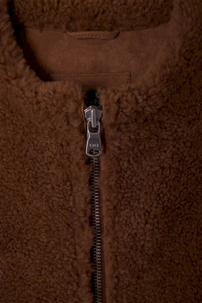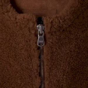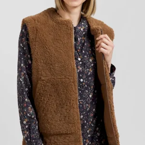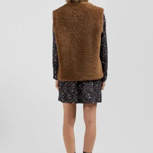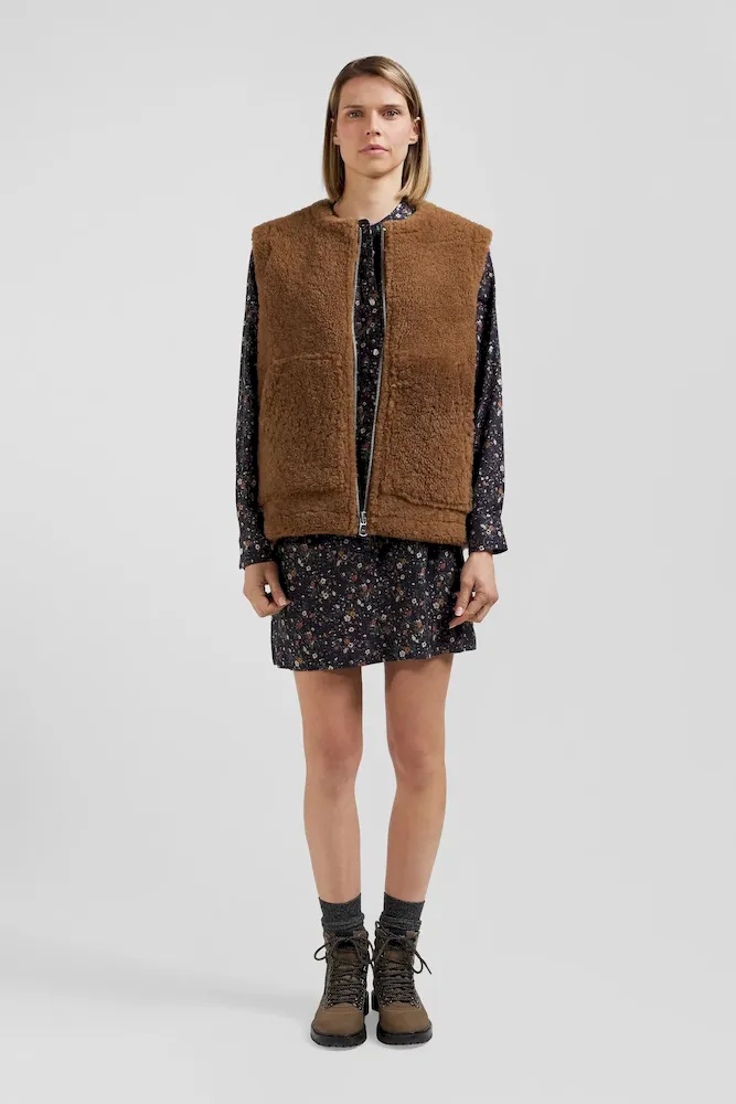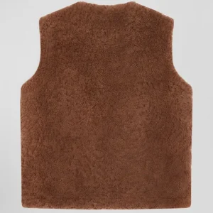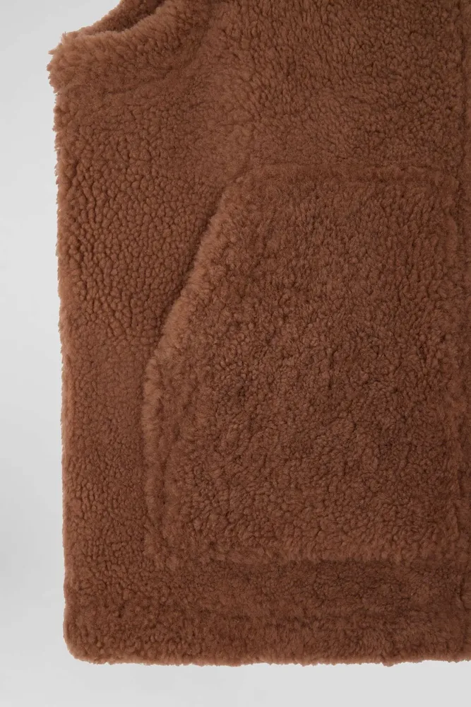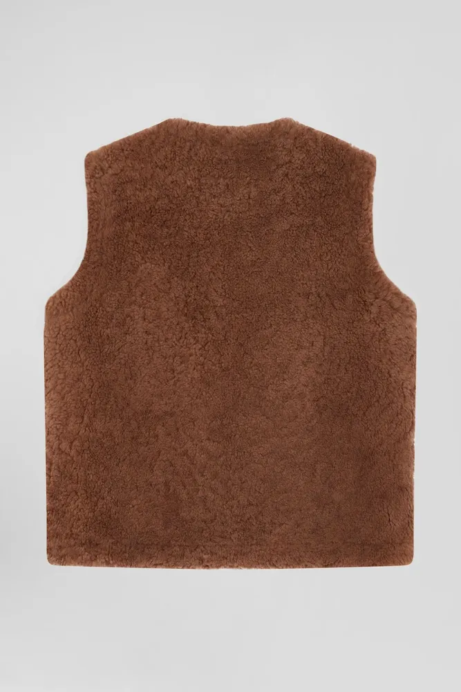 Gilet sans manches zippé en peau retournée noisette coupe Relaxed