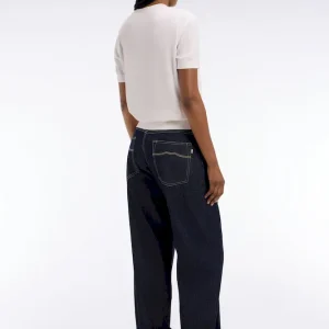 Notre nouveau jean pour femme en denim brut adopte une allure décontractée avec sa coupe droite loose et sa taille basse, idéale pour des silhouettes modernes et effortless. Le large revers cousu en bas de jambe apporte à ce pantalon en denim une touche décontractée tout en restant féminine. Les détails signature, sac de poches rayé, ruban ottoman tricolore, jacron en cuir et bouton personnalisé Eden Park mettent en lumière le soin porté par notre Maison aux moindres détails de votre vestiaire, même pour les pièces les plus essentielles.