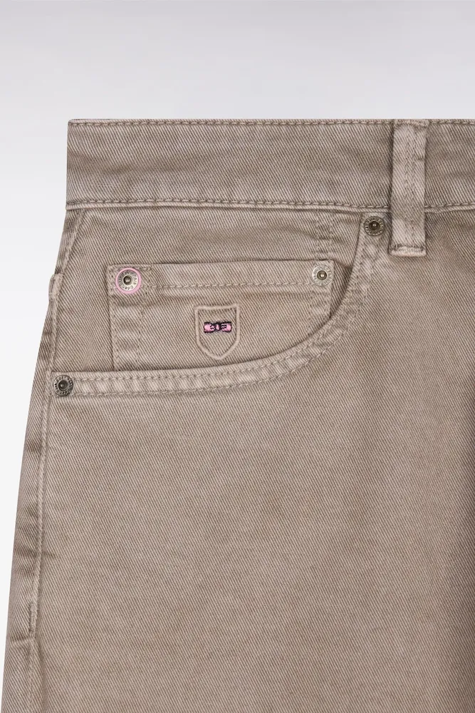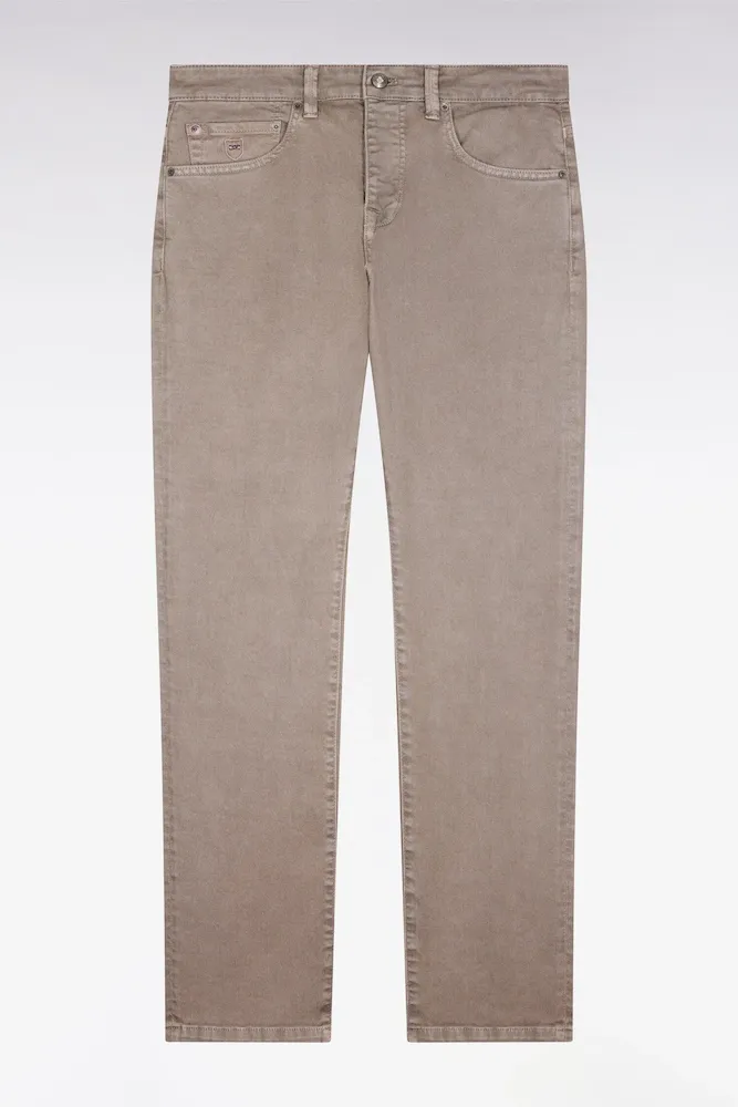 Ce jean en denim stretch beige est un essentiel du vestiaire masculin à l’allure nette et contemporaine. Sa coupe regular assure une ligne équilibrée et votre confort, tandis que la toile denim stretch accompagne naturellement les mouvements. Le style épuré de ce jean beige est rehaussé par les détails signature de la Maison assurant l’élégance sport-chic et la durabilité de ce modèle.