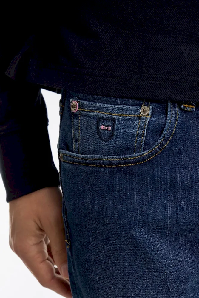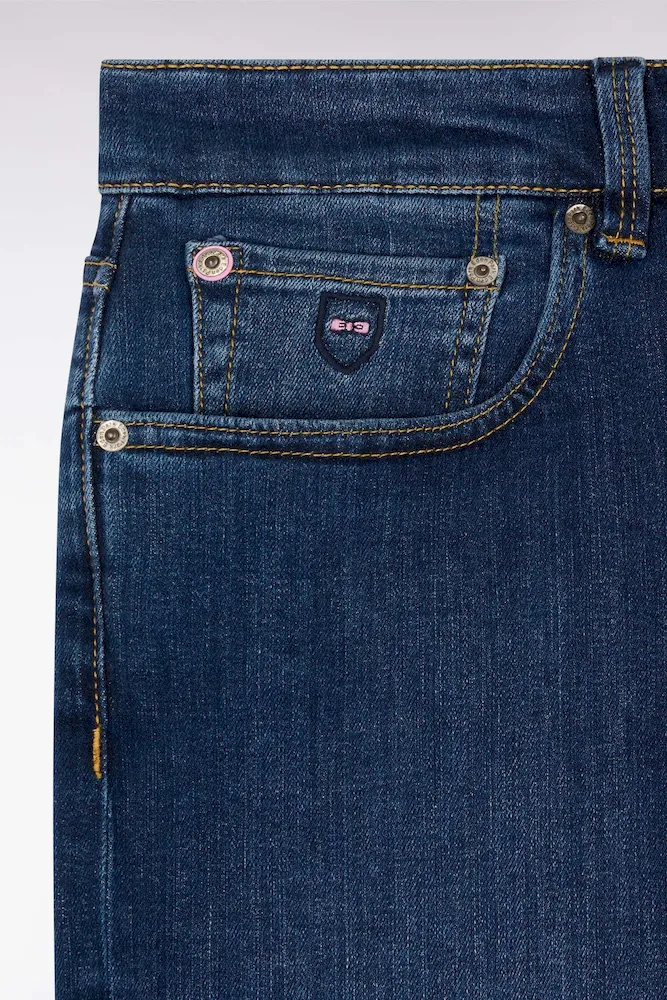 Ce jean en coton extensible est doté de 2 poches cavalières avant, d’une poche ticket avant avec écusson Eden Park brodé, de 2 poches plaquées arrière, d’une fermeture boutonnée et d’un jacron siglé Eden Park à l’arrière