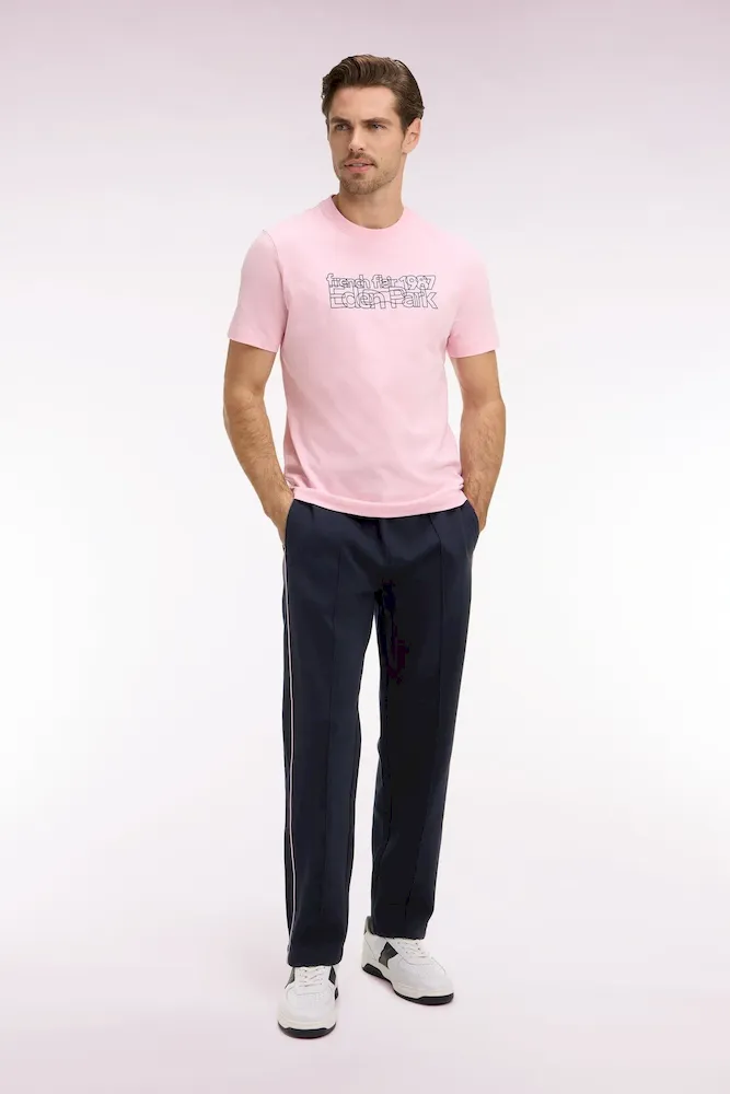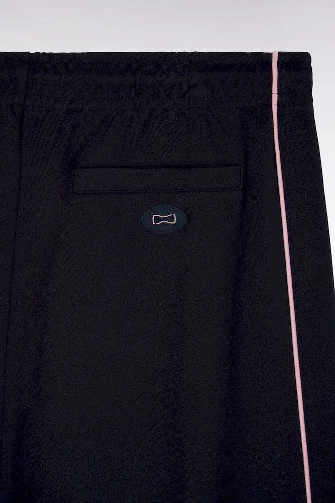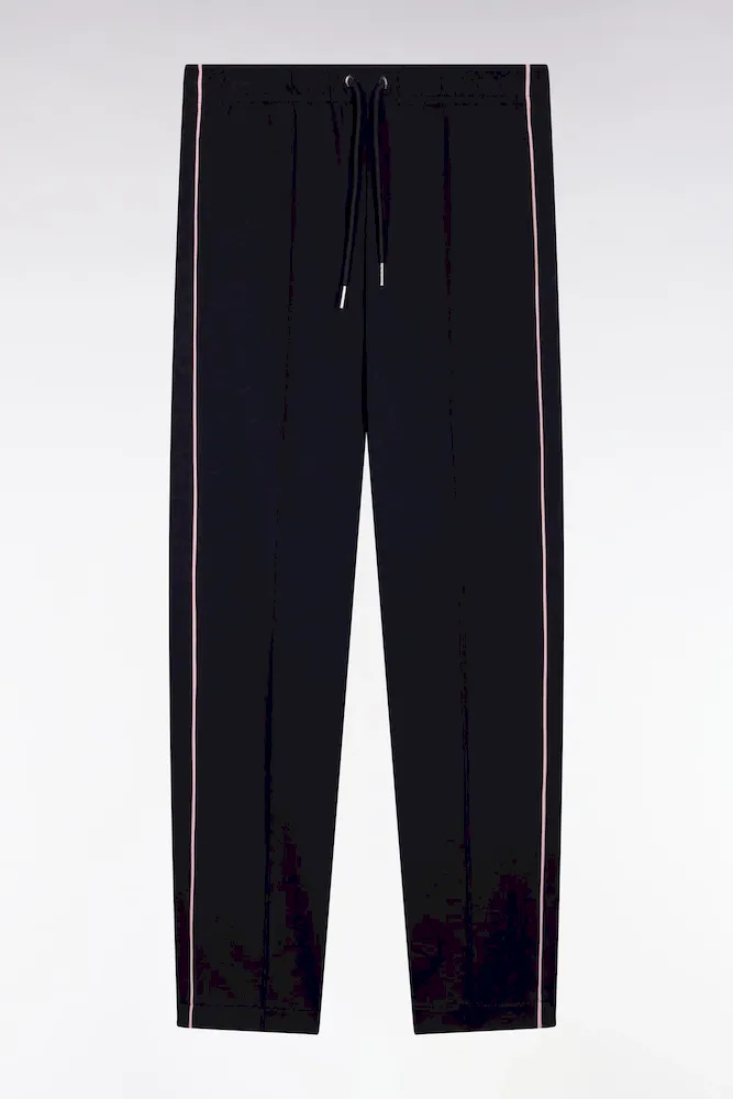Ce pantalon de jogging masculin réalisé en interlock marine ou noir est conçu pour être porté avec le sweatshirt zippé assorti, promesse d’une allure athlétique. Plus épais que le jersey, il offre chaleur et douceur. Les détails soignés, comme le badge en gomme aligné avec la poche et les passepoils contrastés le long des jambes, soulignent l’attention aux détails propre à notre Maison. Sa ceinture élastique et son cordon de serrage assurent un ajustement parfait pour un style confortable et travaillé à la fois. En été, associez-lui simplement un tee-shirt ou un polo à manches courtes dans un piqué coton assorti.