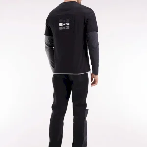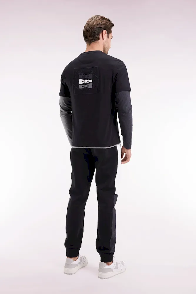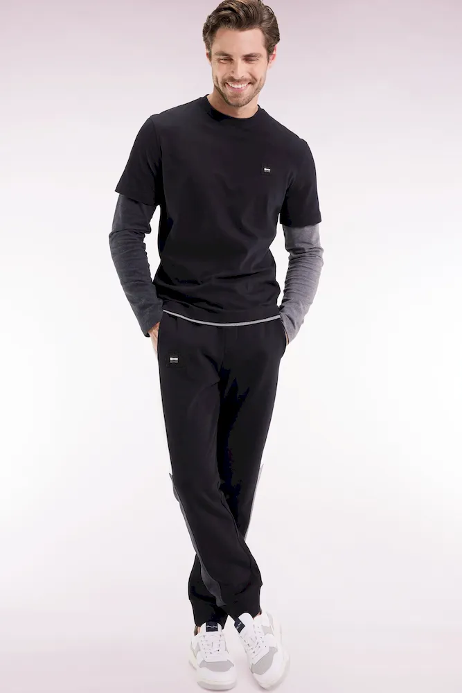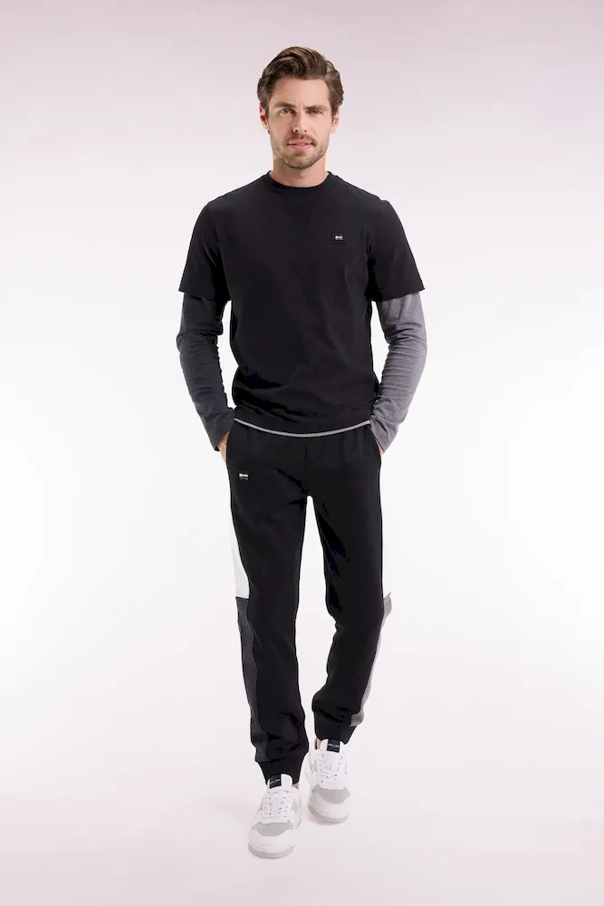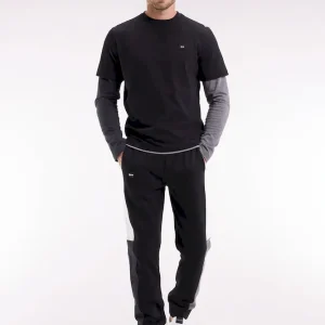 Jogging en molleton gratté noir colorblock coupe droite