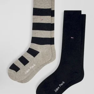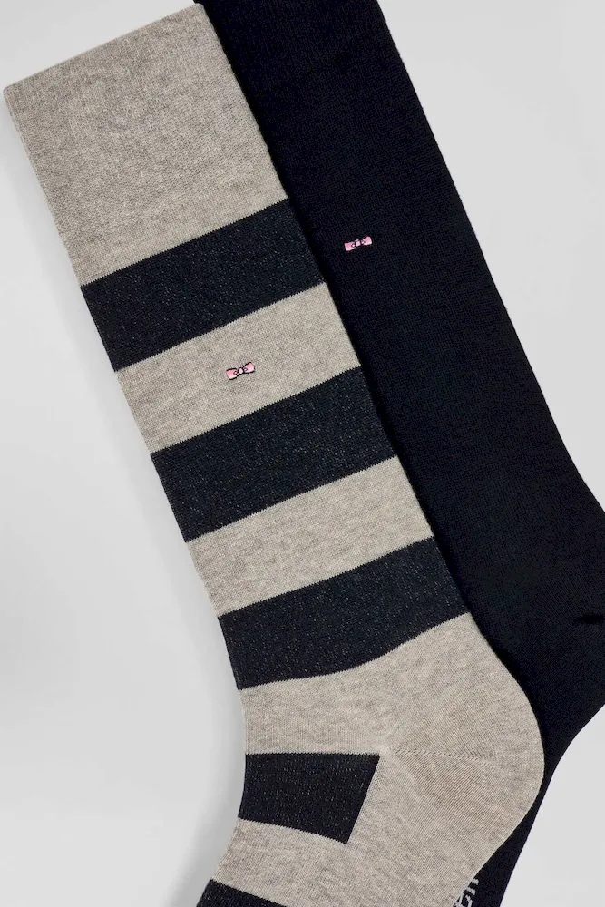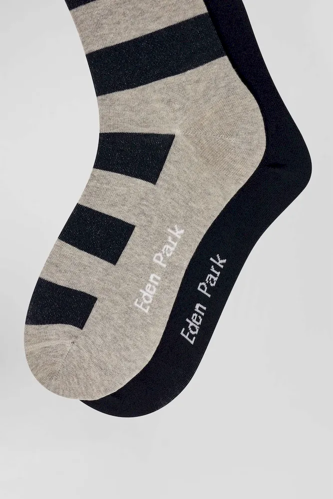 Nos chaussettes montantes cerclées de rayures horizontales ou unies sont devenues des accessoires iconiques des collections homme Eden Park. Ce lot de deux paires de chaussettes proposées en plusieurs variations de couleurs s’accorde parfaitement au vestiaire masculin de la saison automne-hiver.