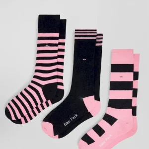 Lot de 3 paires de chaussettes cerclées roses en coton stretch