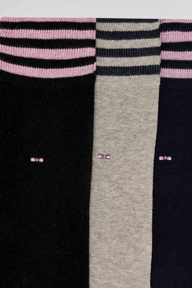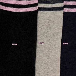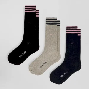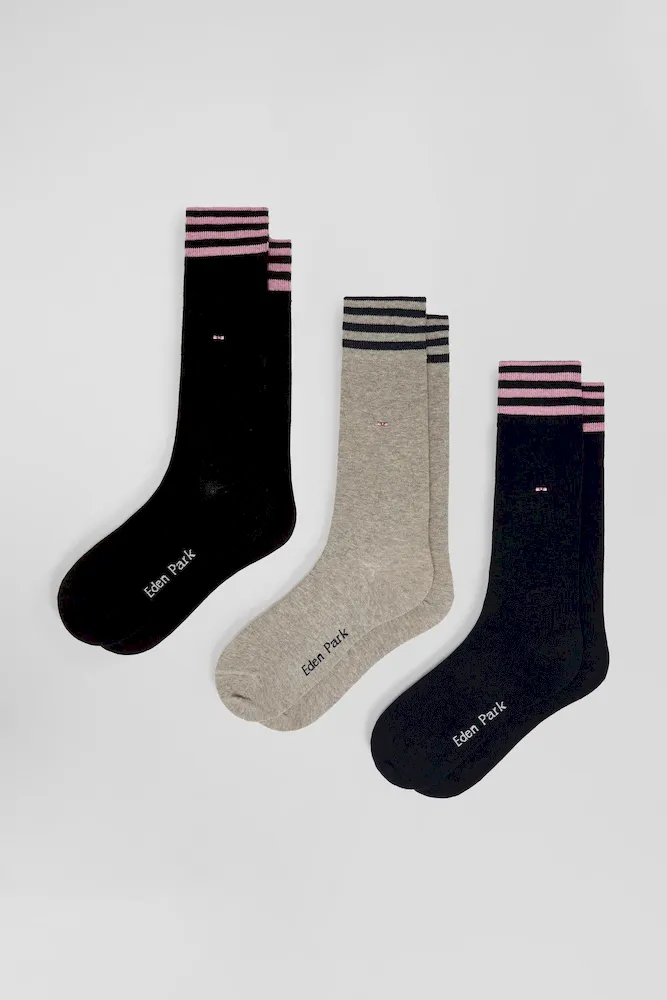 Nos chaussettes montantes cerclées de rayures horizontales sont des incontournables. Ce lot de trois paires de chaussettes de couleurs différentes proposées en colorama marine, gris ou marron s’accorde parfaitement au vestiaire de la saison printemps-été comme à vos intemporels favoris.