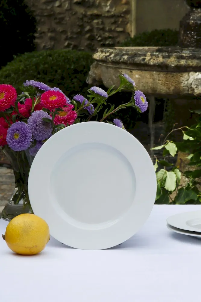 Faites le choix d’une table élégante, avec ces assiettes rondes blanches conçues en porcelaine de Limoges véritable. Ce modèle de fabrication française est souligné par un petit logo nœud papillon gravé en ton sur ton. Épurée et raffinée, sa ligne intemporelle s’intègrera à toutes vos décorations de table.