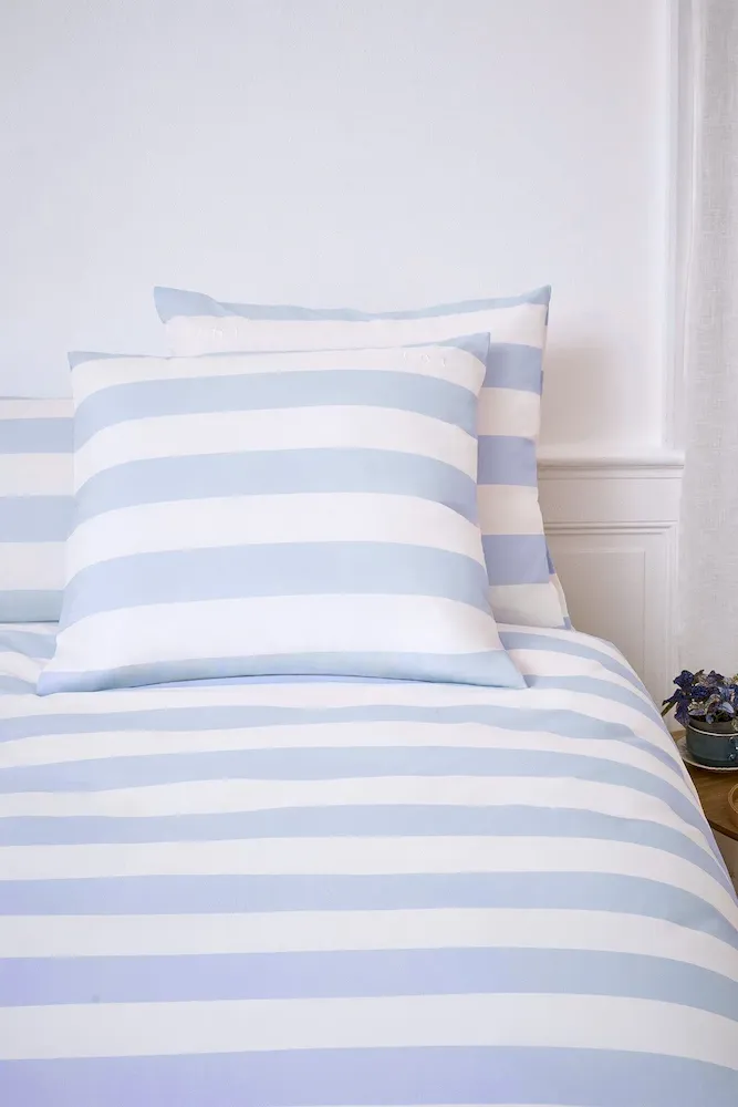 Avec leurs rayures de 8cm inspirées des maillots de rugby, ces deux taies d’oreillers carrées jouent la carte du style sport chic jusque dans la chambre à coucher. Réalisé au Portugal dans un coton 200 fils, gage de confort et de durabilité, ce duo de taies d’oreillers s’inscrit pleinement dans l’air du temps tout en rendant hommage à l’art de vivre à la française. Pour une parure de lit complète, associez ces deux taies d’oreillers rayées à la housse de couette assortie confectionnée dans la même percale de coton pour un confort et une douceur incomparable