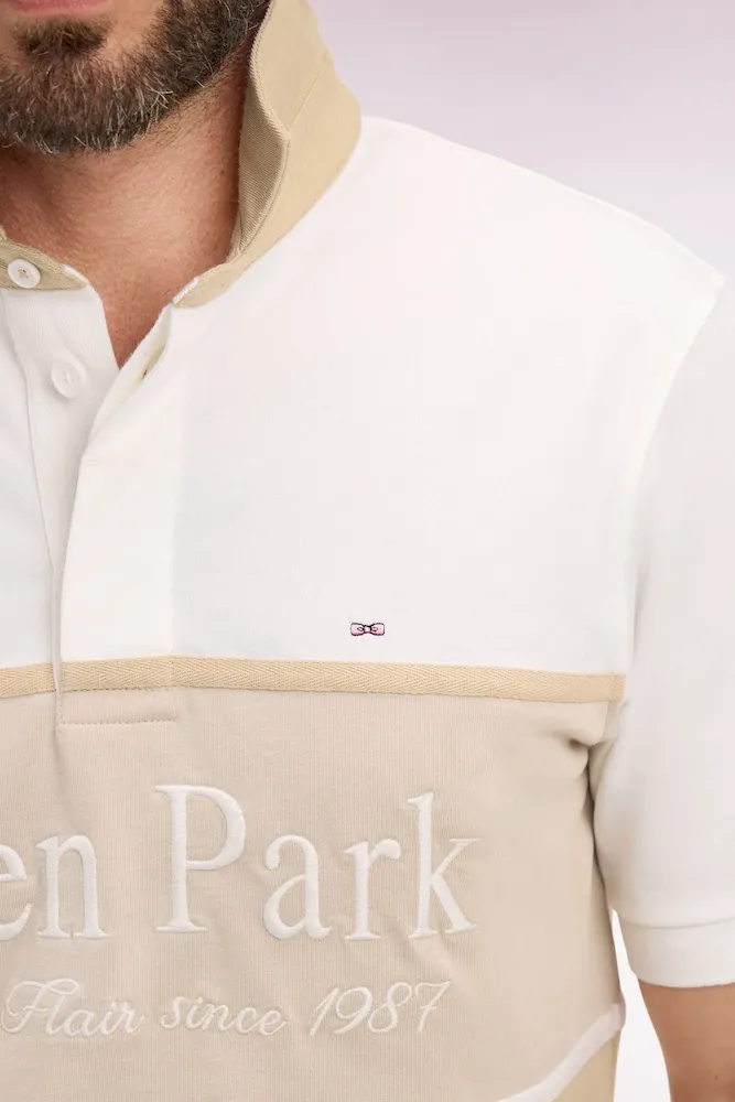 Maillot à manches courtes beige à découpes et broderie coupe regular