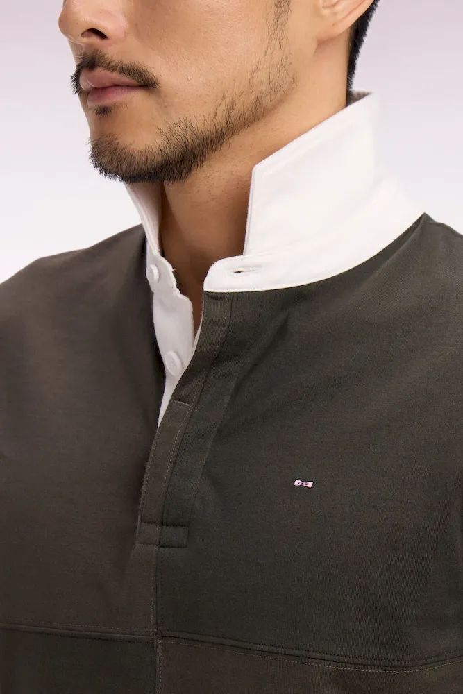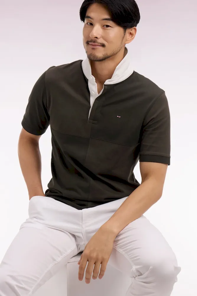 Ce maillot de rugby pour la ville proposé dans un camaïeu kaki combine découpes géométriques et contraste maîtrisé dans un esprit résolument moderne. Le col maillot clair, les boutons ovales rugby et la broderie poitrine incarnent l’héritage Eden Park tandis que le coupé-cousue, technique signature de nos maillots, sublime un design inspiré de maillots mythiques. Parfait pour dynamiser un vestiaire urbain sans renoncer à l’élégance sportive Eden Park.