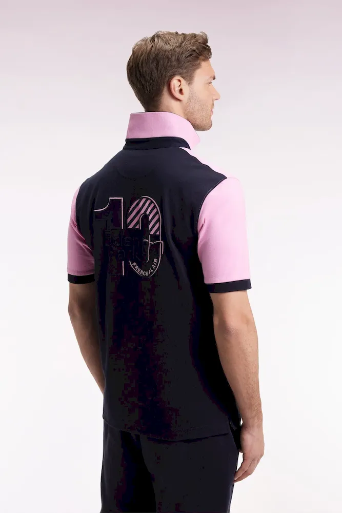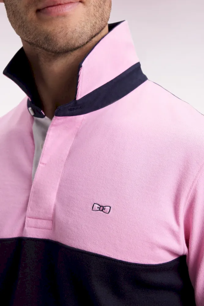 Graphique et audacieux, ce maillot de rugby en coton jersey joue la carte du contraste avec son design bicolore alternant panneaux marine et rose et sa large broderie dans le dos. Fidèle à l’esprit Eden Park, ce maillot masculin pensé pour la ville mêle inspiration sportive et élégance décontractée, soulignée par ses finitions soignées et son emblème brodé. Un modèle idéal pour remplacer polos et T-shirts au quotidien