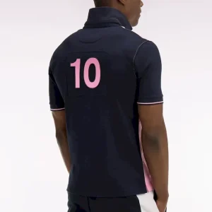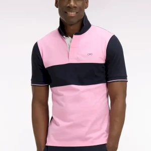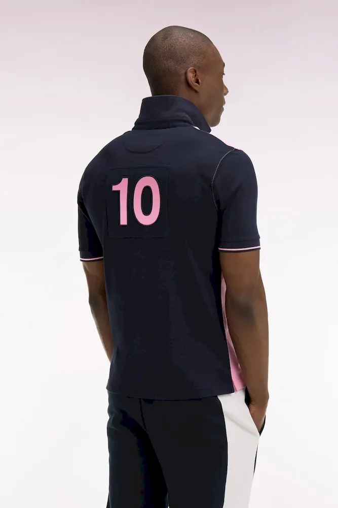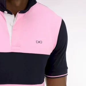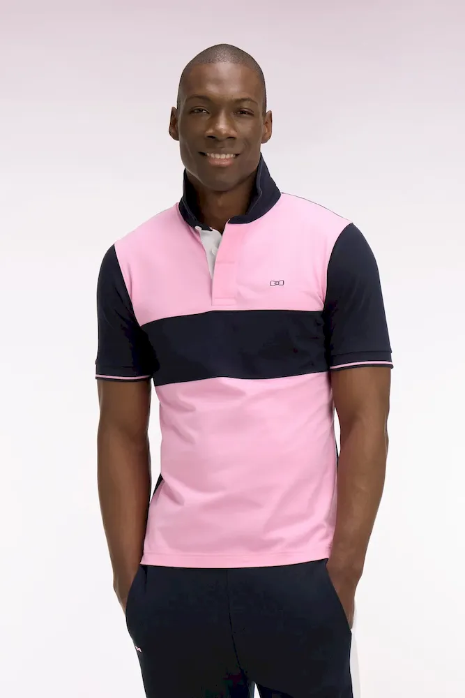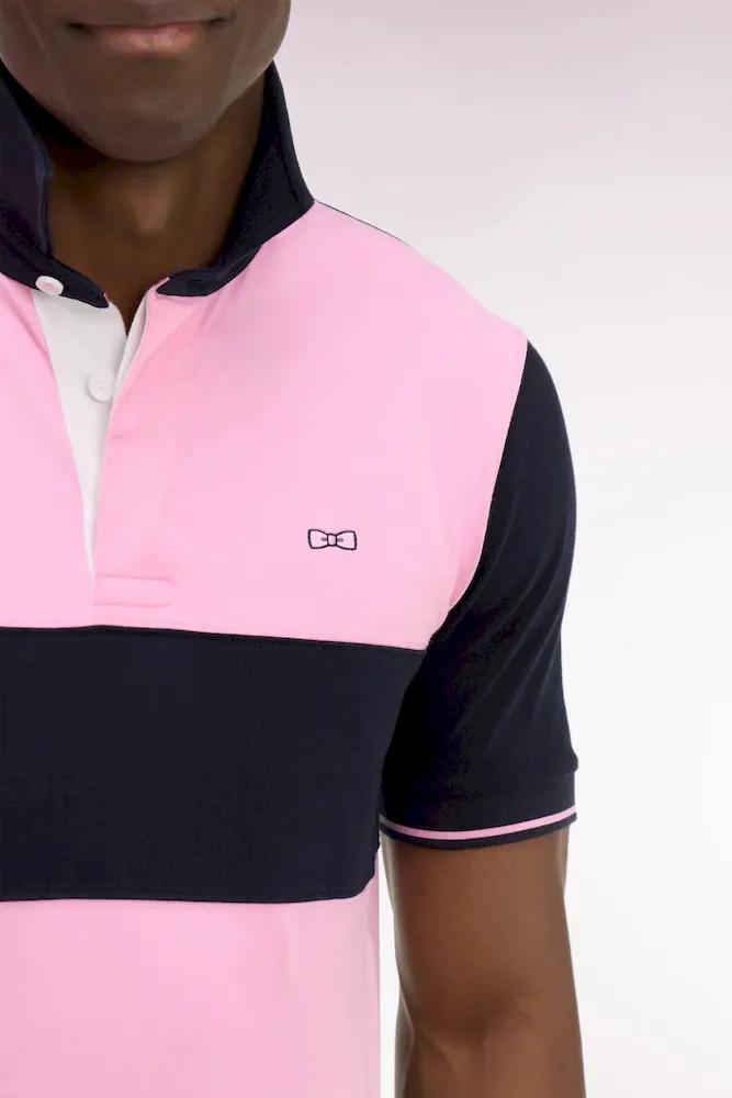 Maillot à manches courtes en coton rose et marine coupe regular