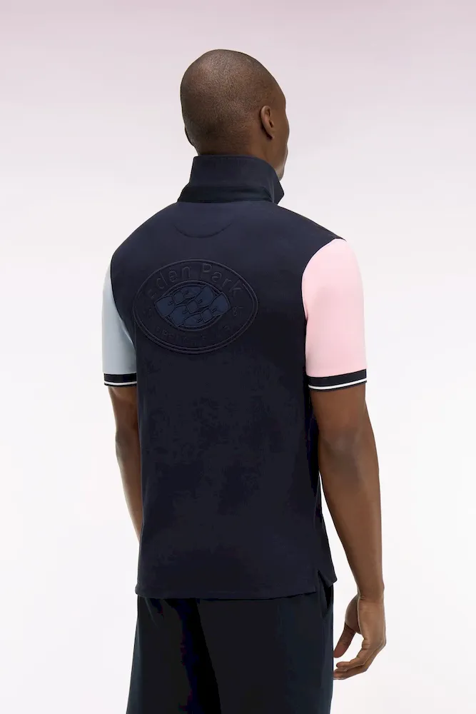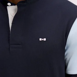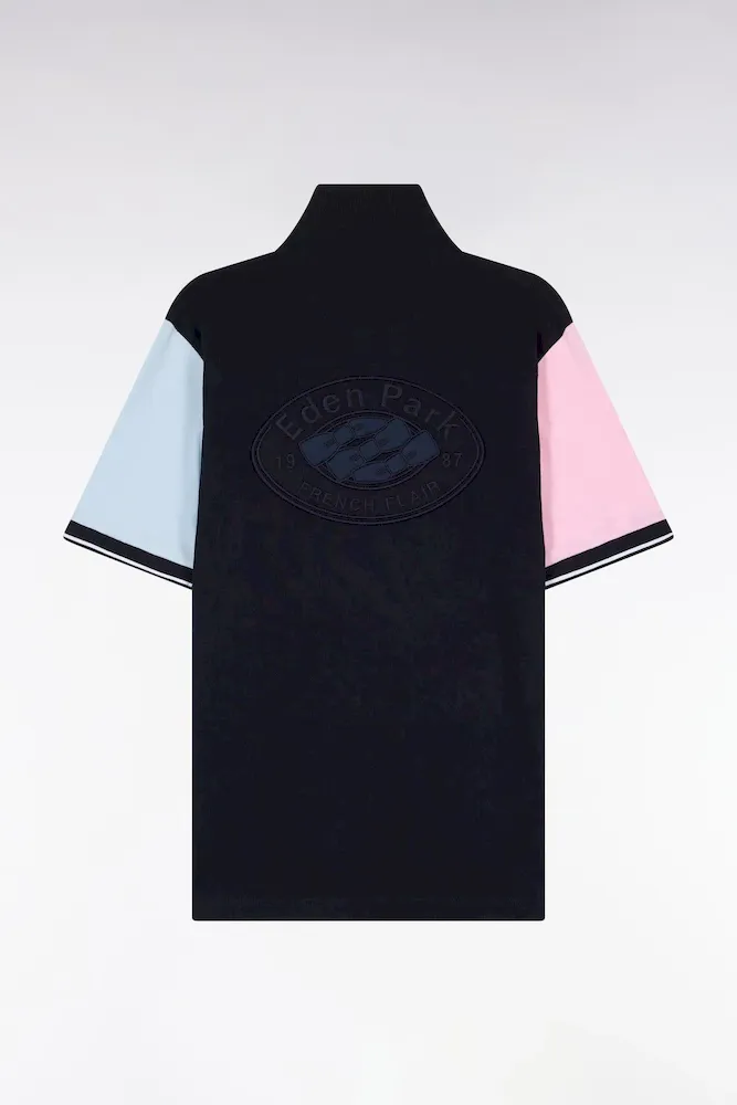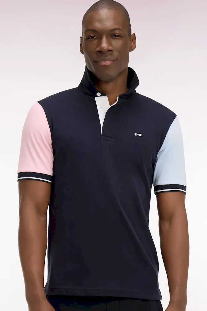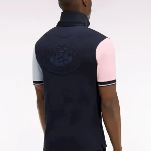 Ce maillot marine aux manches ciel et rose s’inspire directement des jerseys de rugby traditionnels, revisités dans une interprétation mode plus contemporaine. Sa broderie dos, le col maillot et son sous-col en twill, les boutons personnalisé et la sous patte de boutonnage blanche renforcent son allure graphique. Une pièce décontractée idéale pour dynamiser un look sans renoncer à l’élégance.
