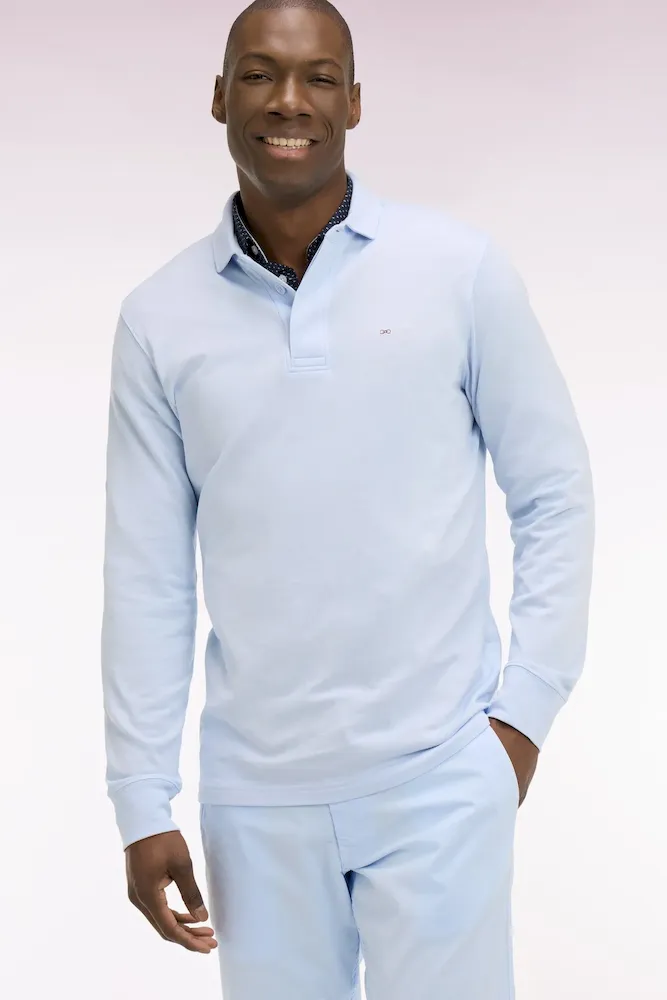 Ce maillot à manches longues en jersey de coton Pima incarne l’élégance décontractée chère à la Maison tout en soutenant une mode plus écoresponsable, le coton Pima étant une fibre naturelle à la culture plus économe en eau. Doux et résistant, il offre un confort durable saison après saison. Doté d’une coupe regular droite et d’un col maillot, il se distingue par ses poignets en bords-côtes et ses boutons ovales inspirés du ballon de rugby, signature emblématique Eden Park. Orné de notre nœud papillon brodé sur la poitrine, ce modèle iconique se décline dans une large palette de coloris pour accompagner chaque journée avec style et confort.