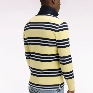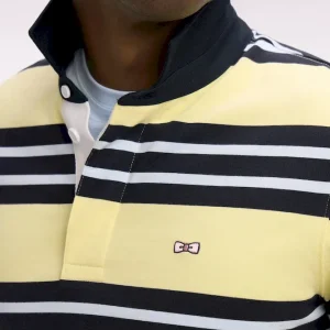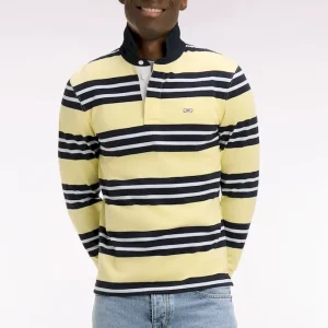 Ce maillot de rugby rayé revisite un grand classique du vestiaire Eden Park avec une élégance contemporaine. Ses rayures fines et équilibrées jouent les contrastes subtils, tandis que le coton choisi pour ce maillot à manches longues garantit confort et tenue impeccable saison après saison. Une pièce proposée dans deux duos de coloris, jaune clair ou vert aqua, parfait mélange d’esprit sportif et de raffinement urbain.
