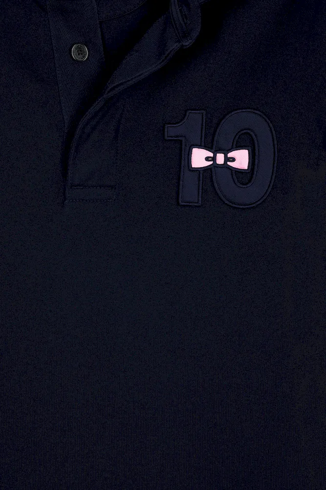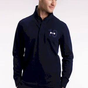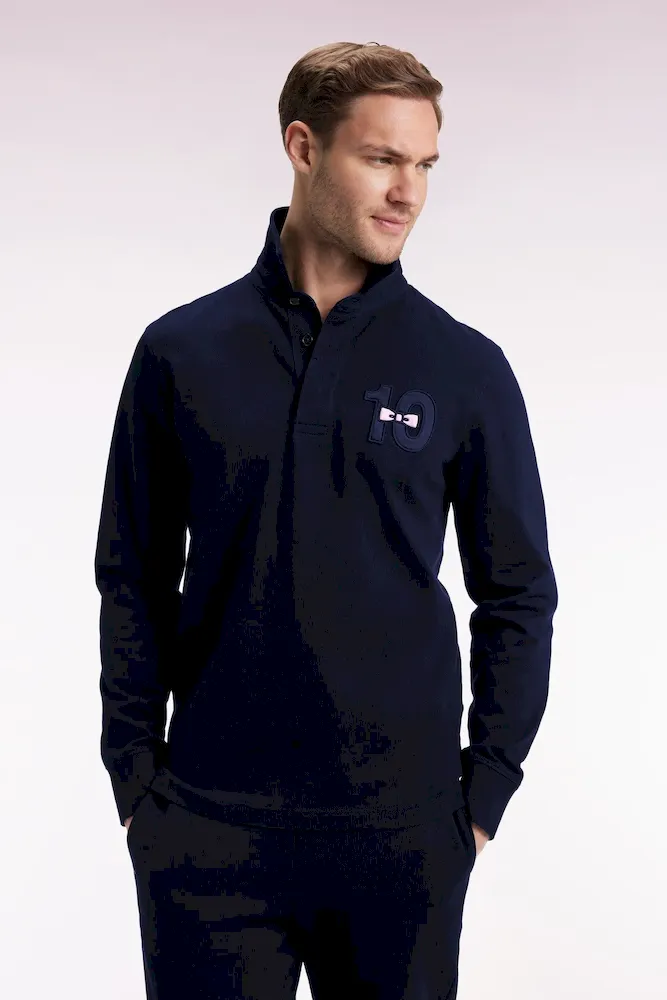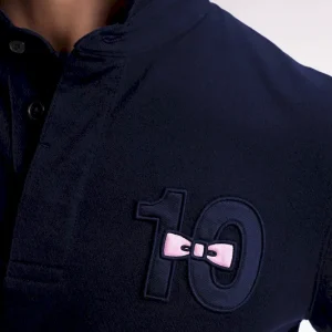 Ce maillot de rugby à manches longues affiche une broderie poitrine ton sur ton 10, maillot historique de notre fondateur, rehaussée de tissu cravate et d’une broderie nœud papillon rose pour une élégance sport-chic. Au dos, une broderie exclusive à notre maison affirme son style French Flair, chic et ludique. Un modèle intemporel réalisé dans un confortable jersey de coton épais dans une coupe droite classique. Chaque détail de ce maillot témoigne du savoir-faire exigeant cultivé par notre Maison depuis ses origines