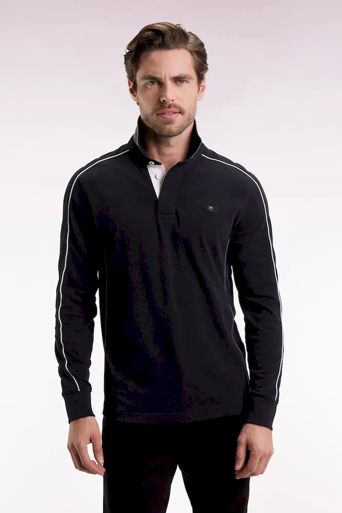 Craquez pour ce maillot de rugby sport-chic en jersey de coton épais. Ce modèle manches longues affirme son caractère avec sa broderie dos aux contour en relief, soulignée de passepoils colorés pour une touche graphique. Le col associe twill et maille bord-côtes grise pour plus de structure, tandis que les poignets resserrés assurent confort et maintien. Une pièce forte, fidèle à l’ADN sport-chic de la Maison offerte en deux coloris intemporels