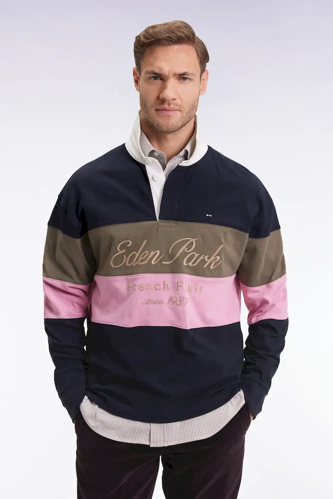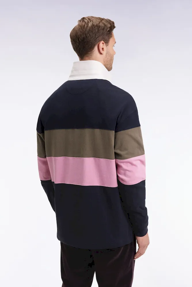 Maillot à manches longues en jersey épais marine et rose broderie vintage