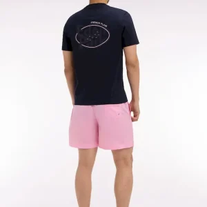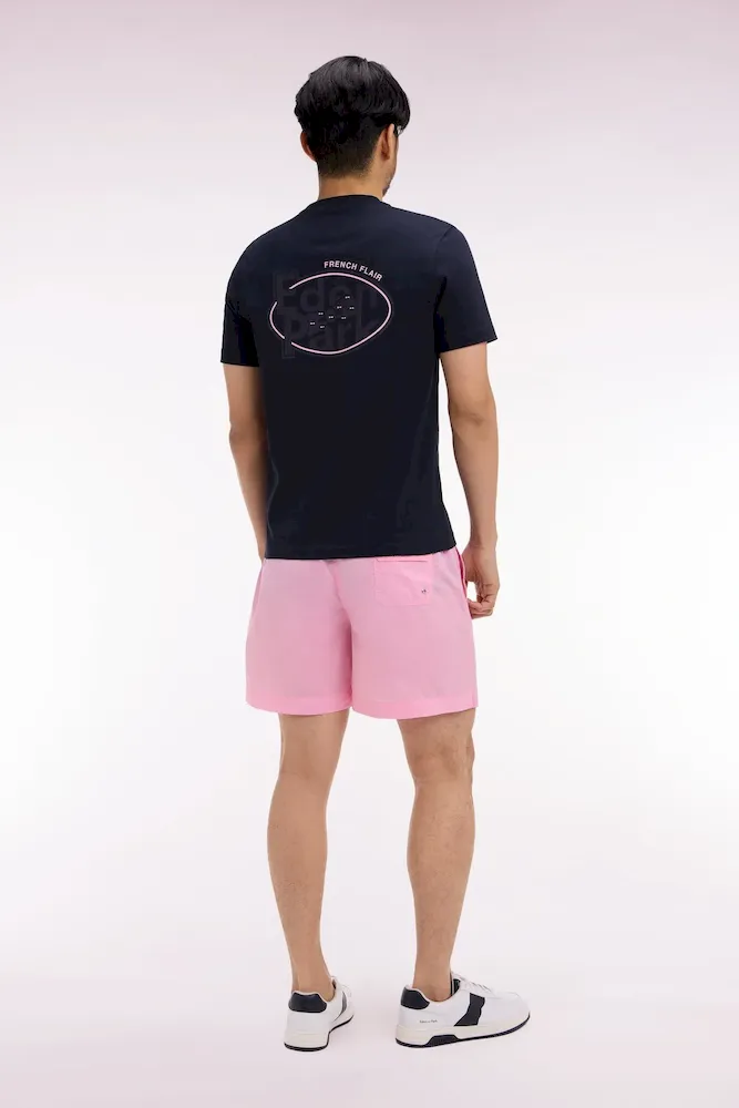 Notre maillot de bain pour homme décline l’allure sport-chic typique des collections Eden Park dans un vestiaire balnéaire construit autour d’une large palette de coloris. Sa ceinture élastiquée à intérieur contrasté et ses cordons tubulaires apportent confort, maintien et détail graphique. La broderie nœud papillon discrète sur le bas de jambe signe ce short de bain complété par une poche arrière à rabat.