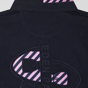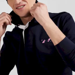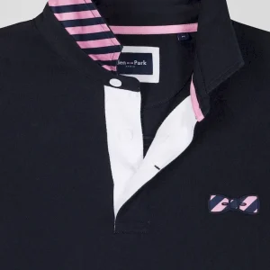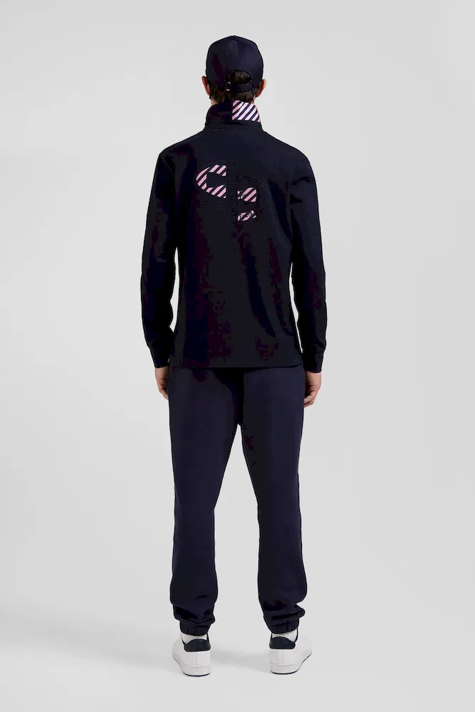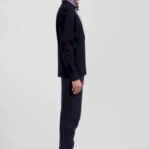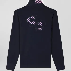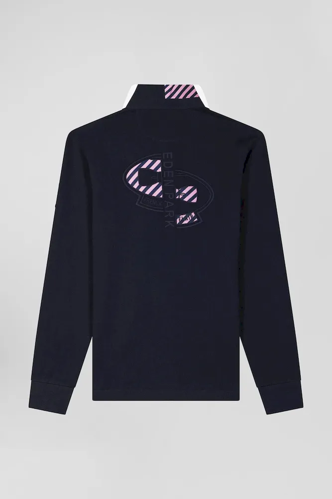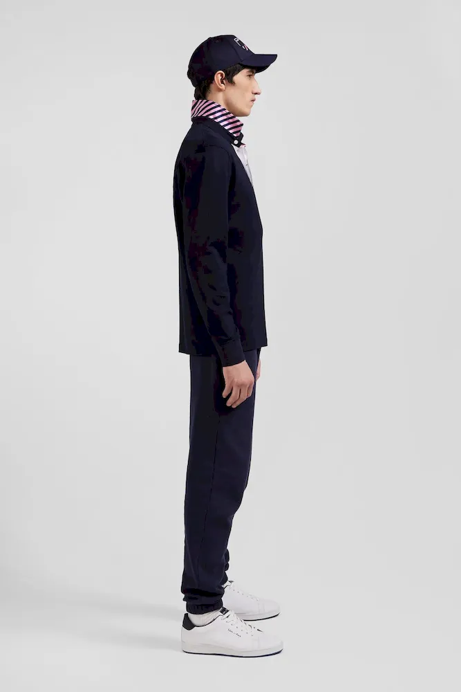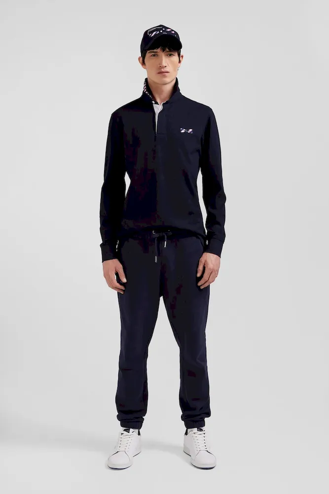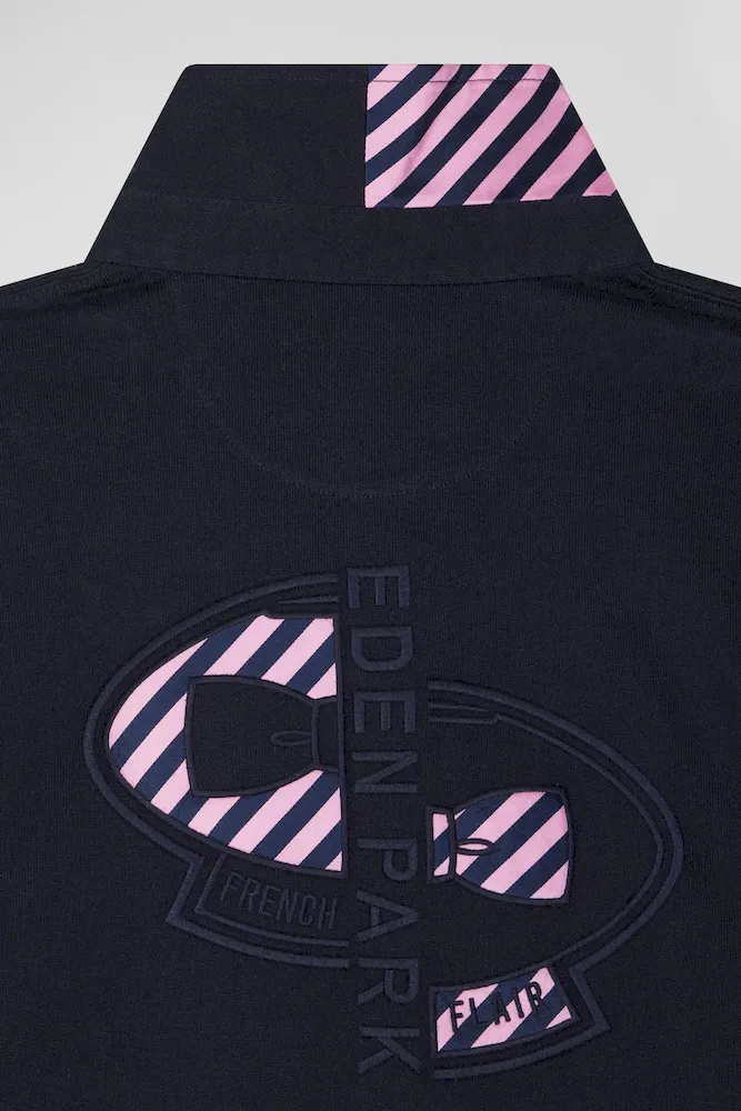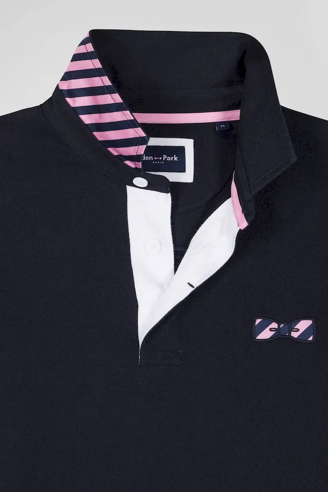 Maillot manches longues en coton bleu marine applications de tissu cravate cerclé coupe Regular