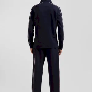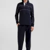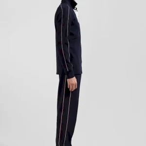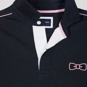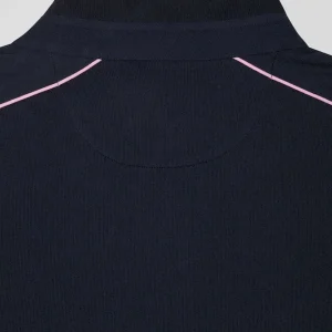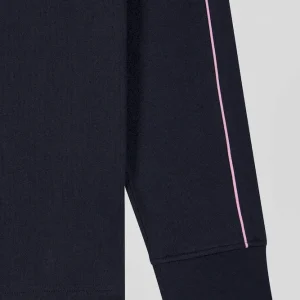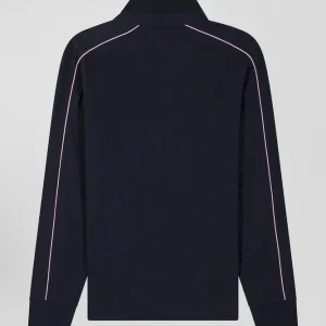 Maillot manches longues en coton bleu marine passepoil rose coupe Regular