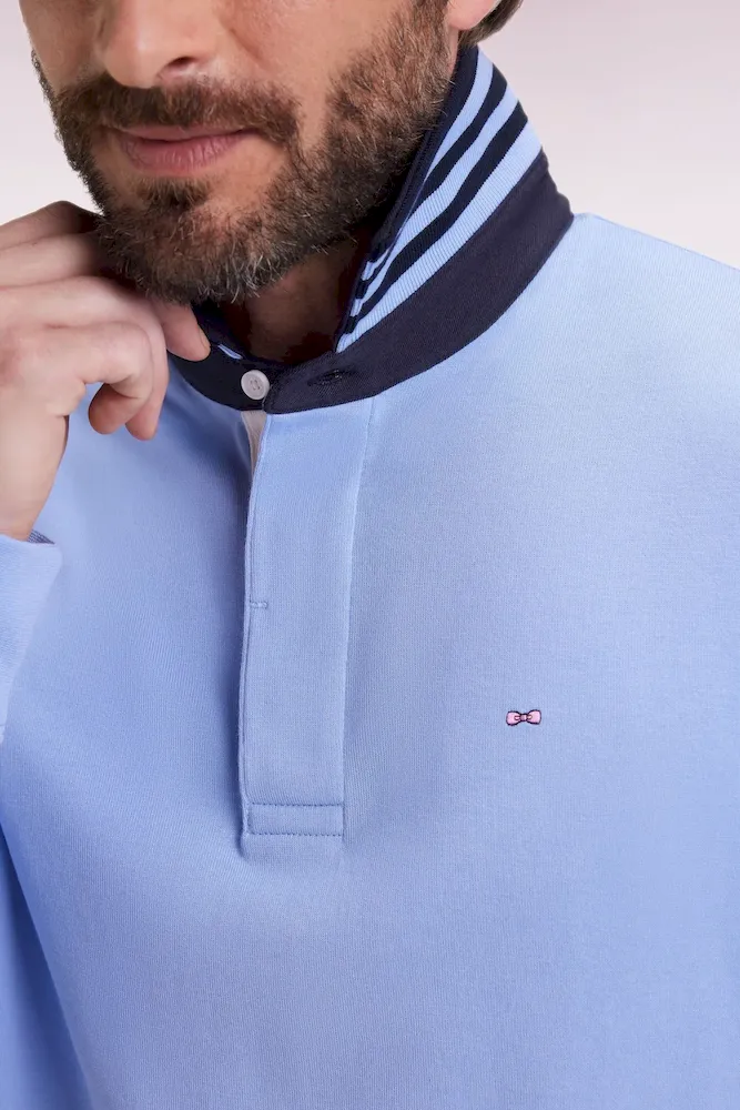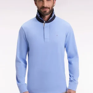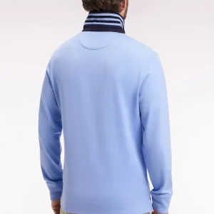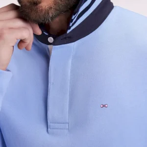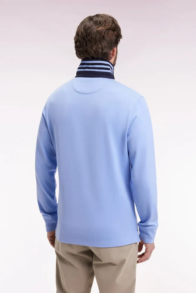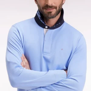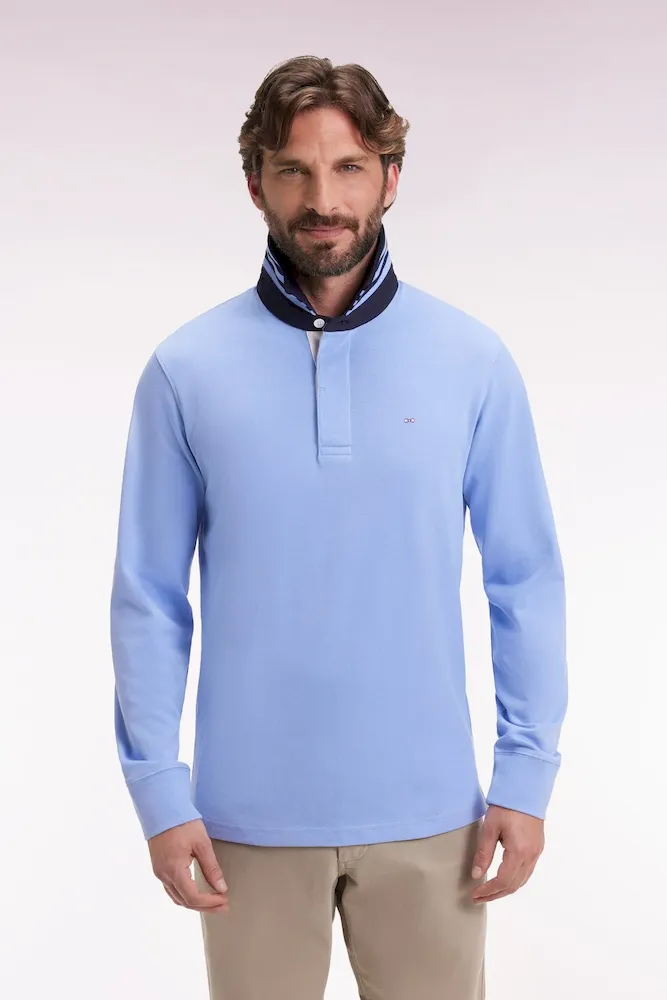 Jersey de coton Pima 4 fils et coupe droite parachevée de bords-côtes tricotés à plat assurent une tenue durable à ce maillot à manches longues. Sa patte de boutonnage doublé de blanc et son col maillot marine offrent un élégant contraste renforcé par un dessous de col à fines rayures. Un modèle sport-chic confortable et intemporel pensé pour l’homme moderne