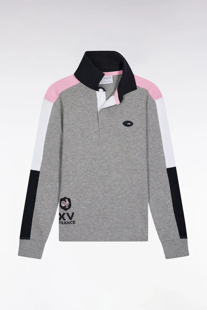 Ce maillot créé avec la FFR rend hommage à l’esprit du rugby avec un design tricolore affirmé et une broderie XV de France. Entre inspiration terrain et allure mode, ce haut pour enfant en jersey de coton séduit par ses manches contrastées et son col maillot travaillé, signature du vestiaire Eden Park. Un modèle clé pour les jeunes supporters qui aiment afficher leur passion du rugby, même en dehors du terrain