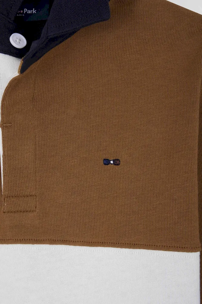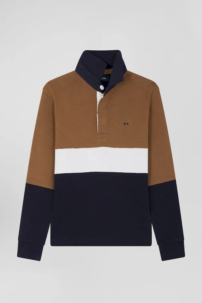 Maillot manches longues tricolore en coton noisette coupe Regular