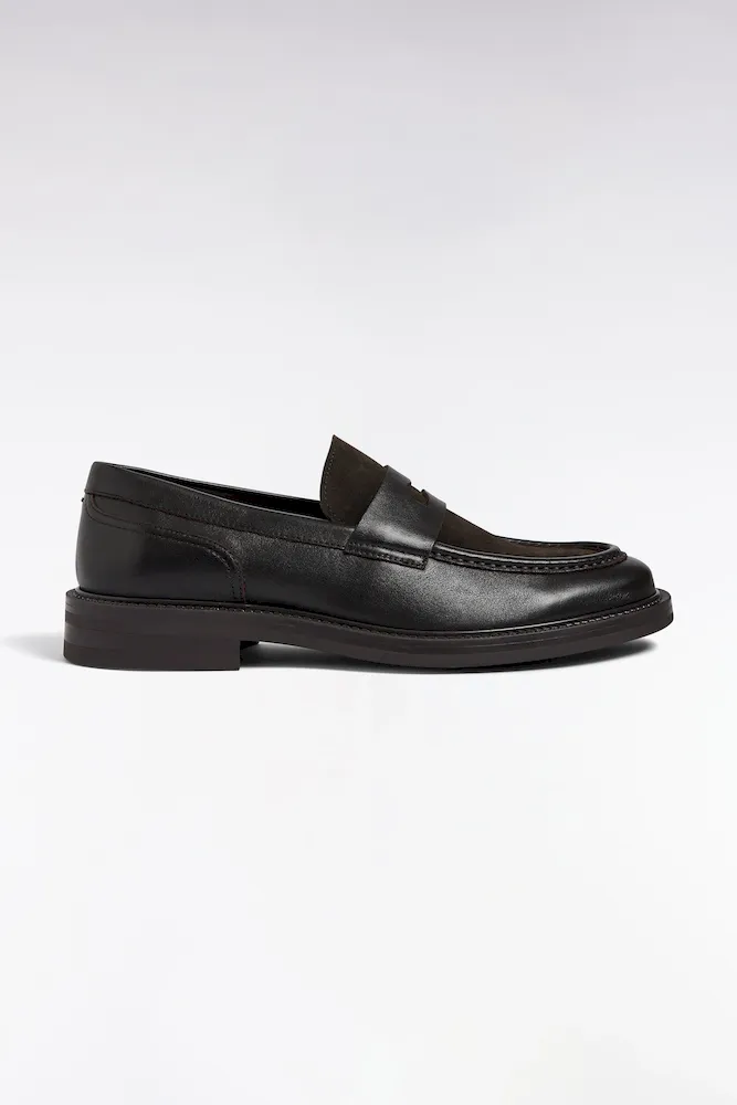 Déclinés dans un cuir marron à l’éclat discret, ces mocassins bimatière conjuguent raffinement et modernité comme nuls autres. Leur ligne épurée s’agrémente de surpiqûres discrètes et d’inserts de cuir suédé ton sur ton offrant un jeu de texture soigné contrastant élégamment avec le cuir glacé. Un essentiel revisité, à porter aussi bien avec un pantalon habillé qu’un chino