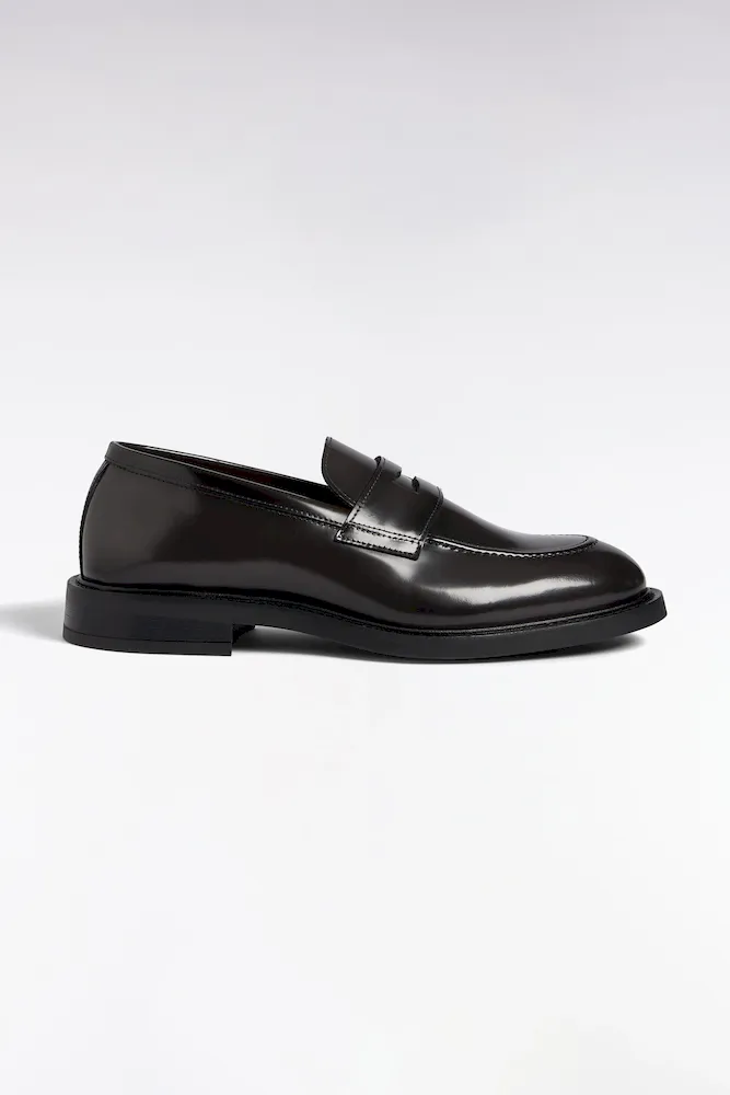 Ces mocassins pour homme en cuir glacé noir se distinguent par leur brillance élégante et leur silhouette élancée aux surpiqures discrètes. Cette paire de mocassins tendance et intemporelle sera idéale pour compléter une tenue composée d’un pantalon habillé comme d’un jean. Remarquez leur découpe reprenant la forme de l’emblème d’Eden Park : le nœud papillon et laissez-vous séduire par leur confort et leur allure urbaine à adopter du bureau au dîner