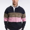 Ce nœud papillon en soie marine revisite un accessoire classique avec une élégance sport chic assumée. Son collier rayé rose, inspiré des maillots de rugby et des codes signature de la Maison, apporte une touche graphique distinctive. Un modèle raffiné, idéal pour ponctuer une silhouette avec caractère et modernité.