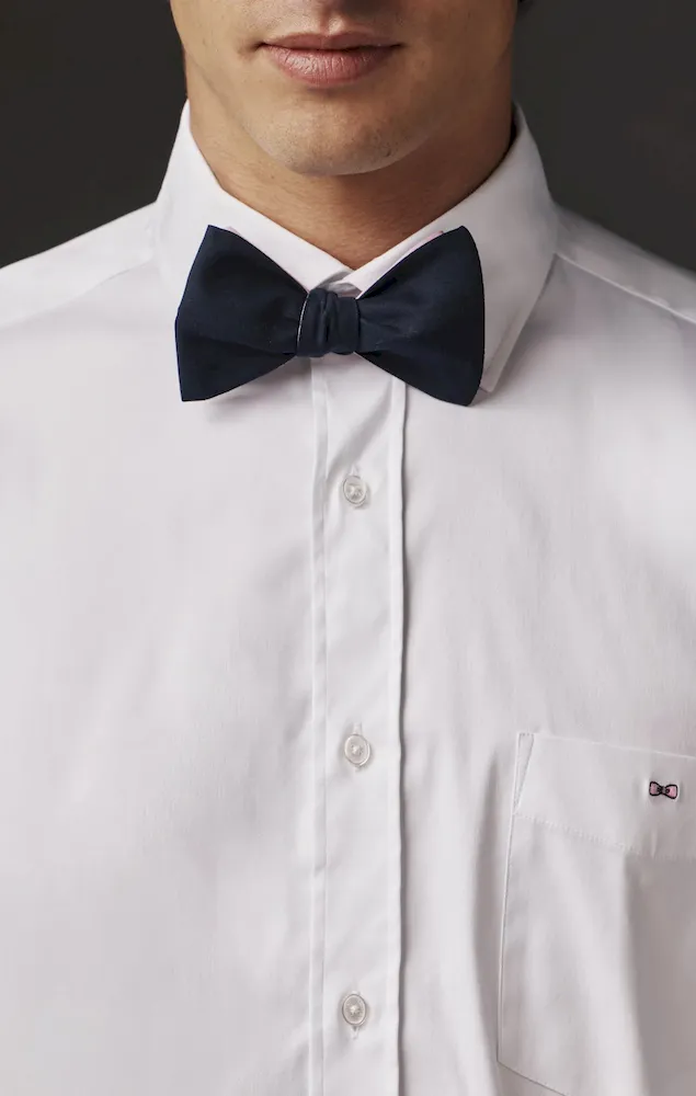 Ce nœud papillon uni bleu marine, doublé de coton rose, est réalisé à la main à partir de tissus upcyclés soigneusement sélectionnés dans nos stocks dormants. Sobre et intemporel, cet accessoire masculin reflète l’élégance décontractée qui caractérise Eden Park, tout en affirmant une allure chic et contemporaine. Proposé dans le cadre de la capsule durable Pap’Atelier à retrouver sur notre site internet, ce modèle exclusif se démarque par la qualité de ses détails, la présence de la griffe Eden Park prélevée dans nos archives et son attache prémontée pour un essayage facilité confortable. Un essentiel du vestiaire formel qui s’adapte aussi bien aux grandes occasions qu’aux rendez-vous professionnels et élégants, vous garantissant une silhouette impeccable en toute circonstance.