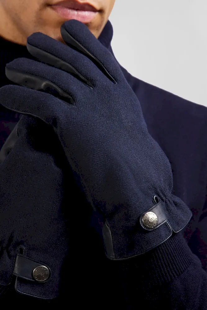 Ces gants pour homme en cuir de mouton lisse bleu marine sont le summum de l’élégance fonctionnelle. Un bouton siglé au poignet leur ajoute une touche distinctive, tandis que le cuir de qualité sélectionné et travaillé par notre Maison assure chaleur et style.